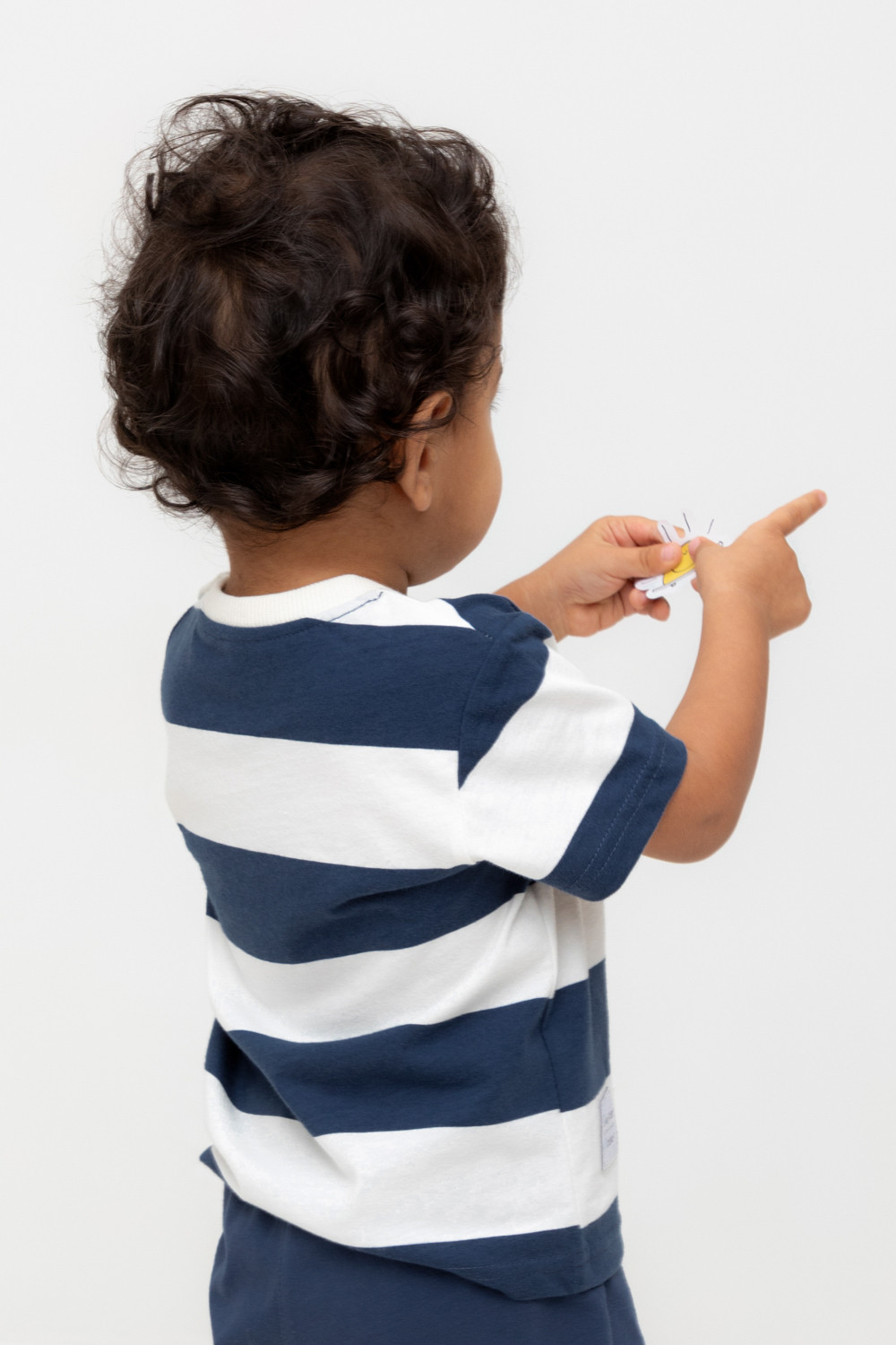 Футболка для мальчика из высококачественного трикотажного полотна. Оригинальная набивка выполнена из стойких текстильных гипоаллергенных красителей. Для удобства на плече застежка на кнопки.