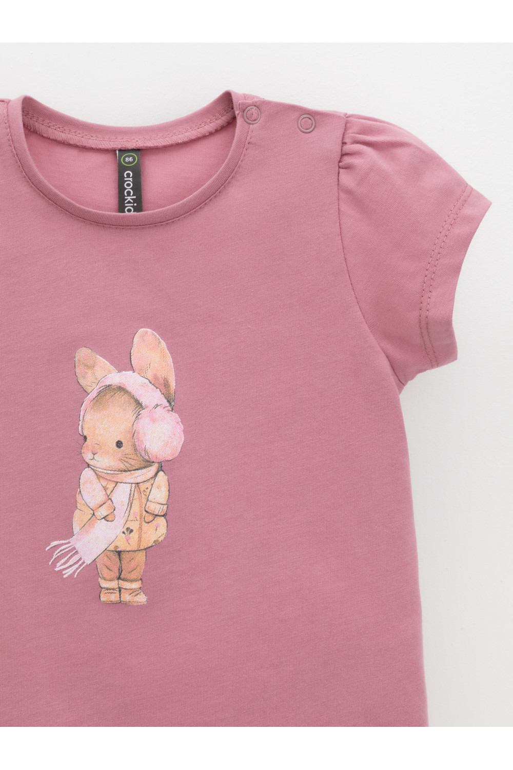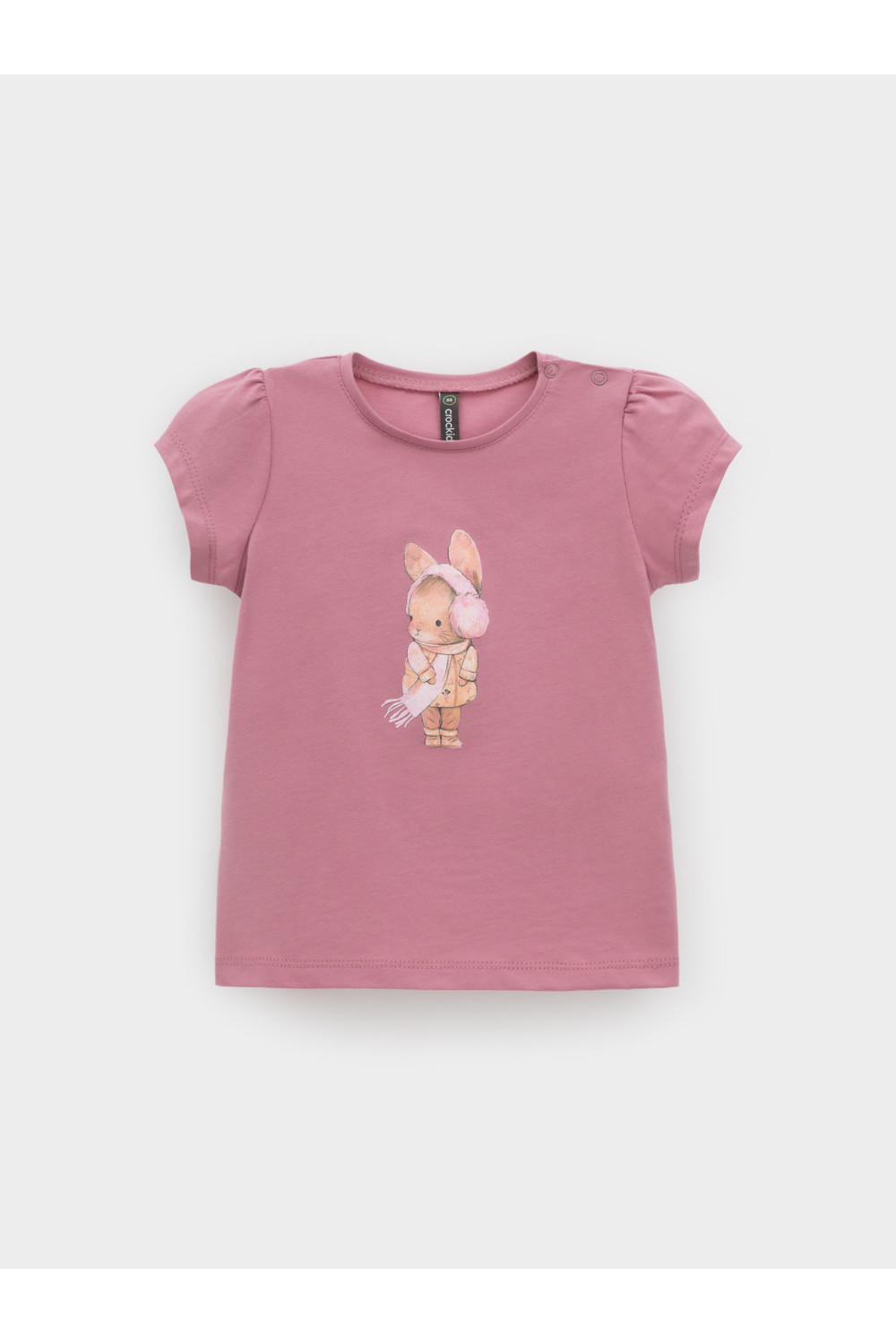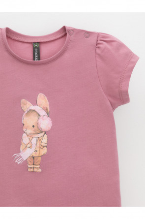 Футболка для девочки из гладкого трикотажа, произведённого из высококачественного натурального хлопка. На плече застёгивается на кнопки. Оригинальный принт выполнен из стойких текстильных гипоаллергенных красителей. Изделие сохраняет цвет и форму после многократных стирок. Все трикотажные полотна производятся в соответствии с нормами швейцарского сертификата ЭкоТекс.