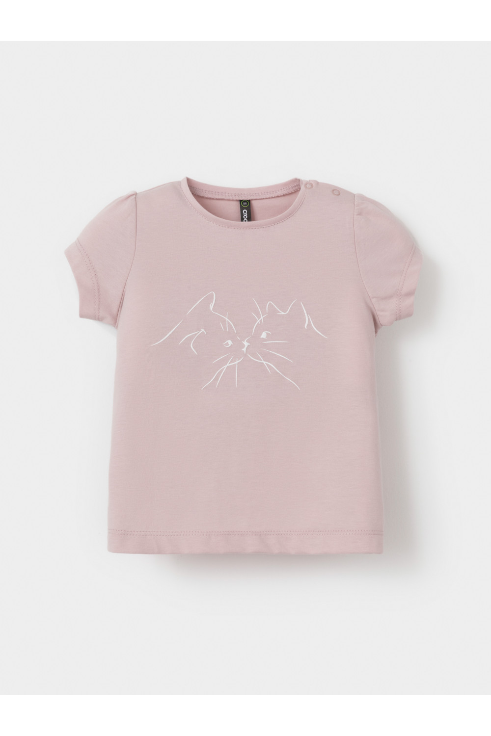 Футболка для девочки из гладкого трикотажа, произведённого из высококачественного натурального хлопка. На плече застёгивается на кнопки. Оригинальный принт выполнен из стойких текстильных гипоаллергенных красителей. Изделие сохраняет цвет и форму после многократных стирок. Все трикотажные полотна производятся в соответствии с нормами швейцарского сертификата ЭкоТекс.