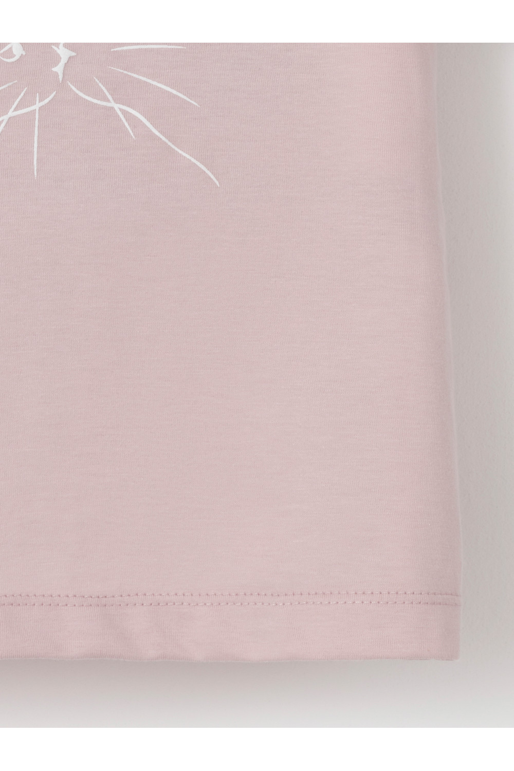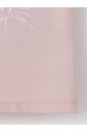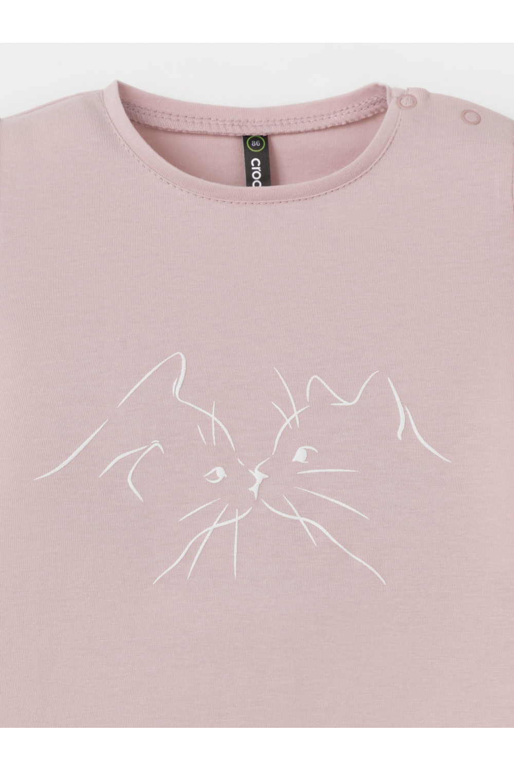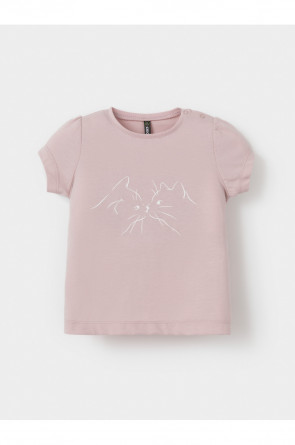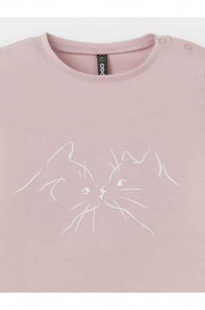 Футболка для девочки из гладкого трикотажа, произведённого из высококачественного натурального хлопка. На плече застёгивается на кнопки. Оригинальный принт выполнен из стойких текстильных гипоаллергенных красителей. Изделие сохраняет цвет и форму после многократных стирок. Все трикотажные полотна производятся в соответствии с нормами швейцарского сертификата ЭкоТекс.