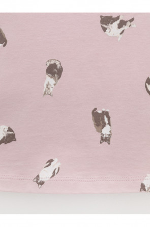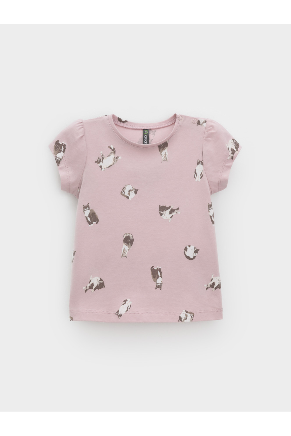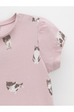 Футболка для девочки из гладкого трикотажа, произведённого из высококачественного натурального хлопка. На плече застёгивается на кнопки. Оригинальный принт выполнен из стойких текстильных гипоаллергенных красителей. Изделие сохраняет цвет и форму после многократных стирок. Все трикотажные полотна производятся в соответствии с нормами швейцарского сертификата ЭкоТекс.