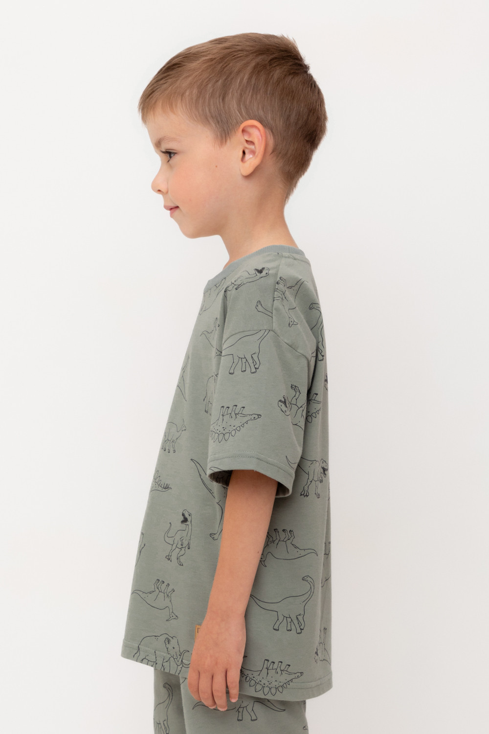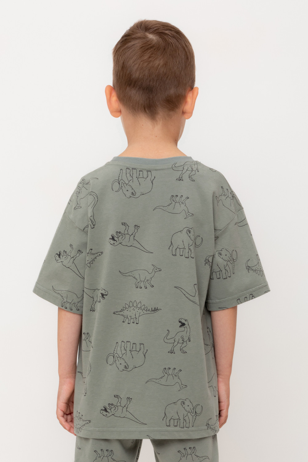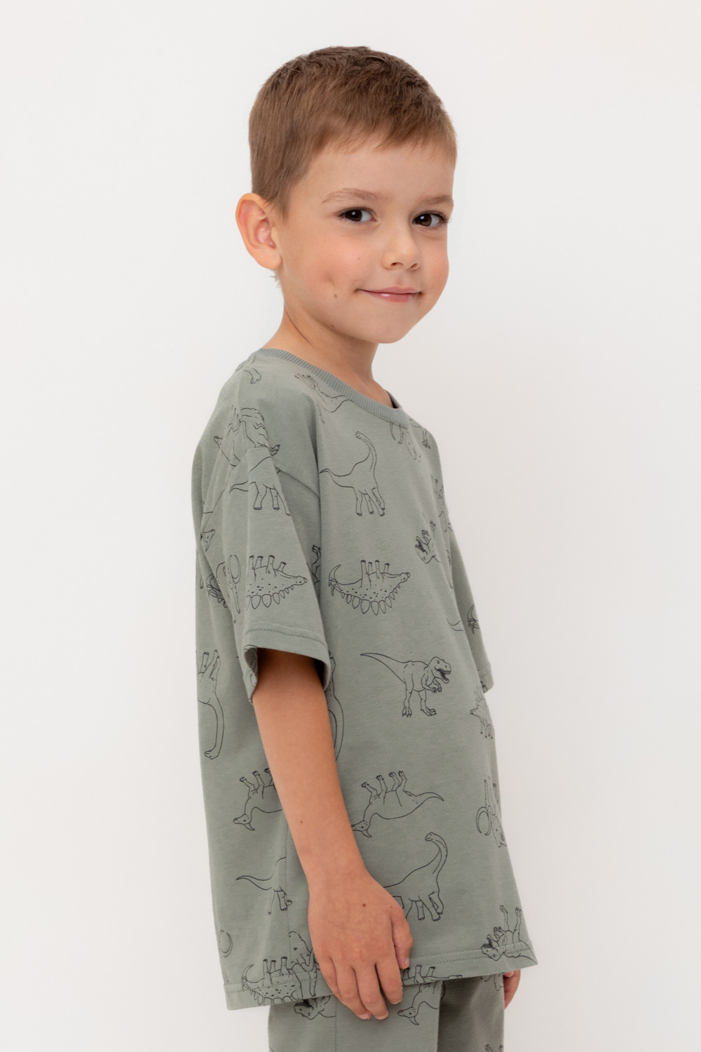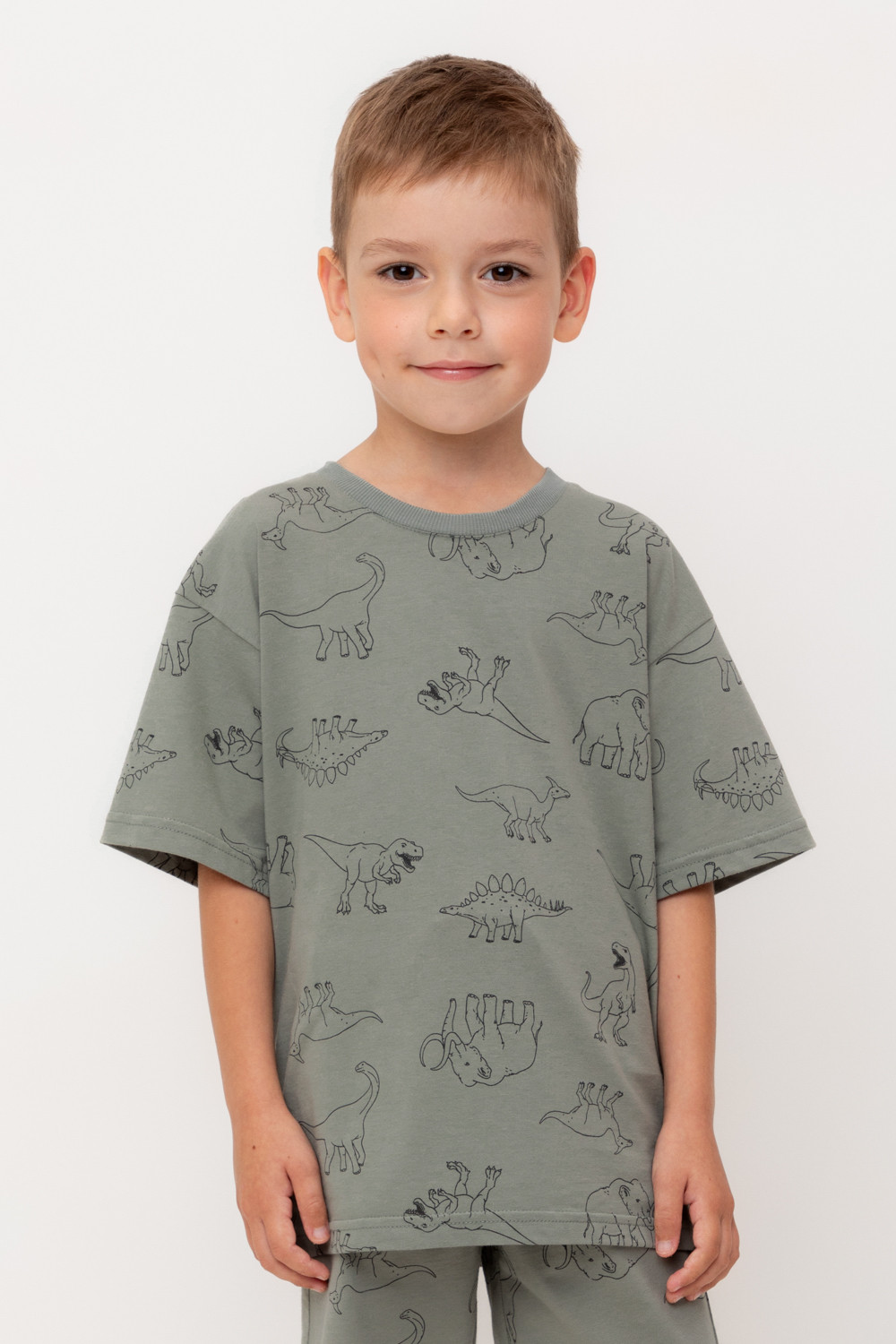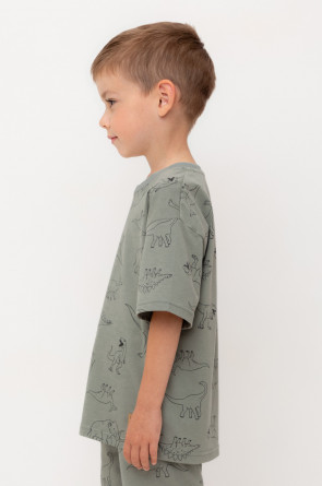 Футболка для мальчика из высококачественного трикотажного полотна. Оригинальная набивка выполнена из стойких текстильных гипоаллергенных красителей. Для удобства в размерах 92 и 98 на спинке есть застежка на кнопки.
