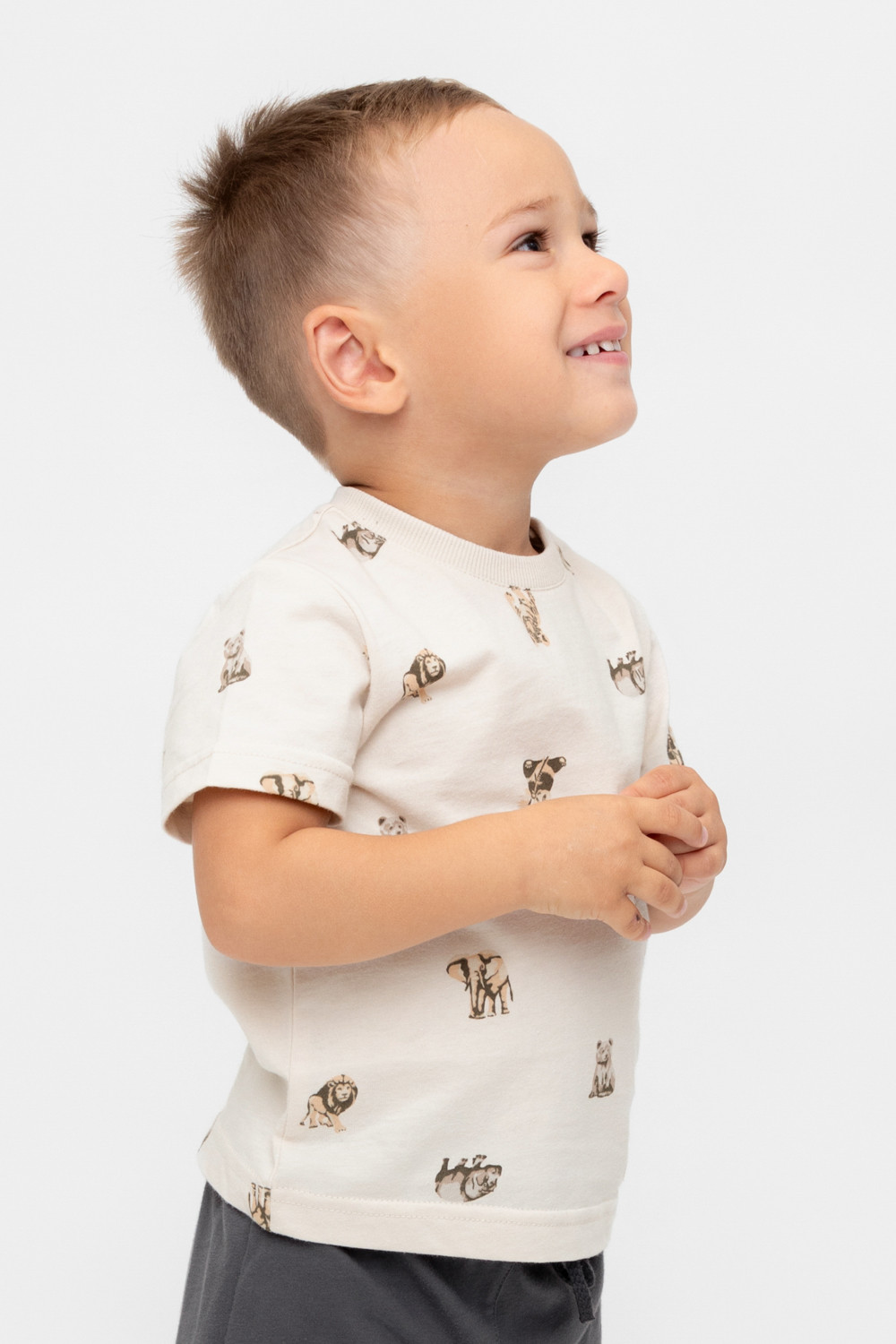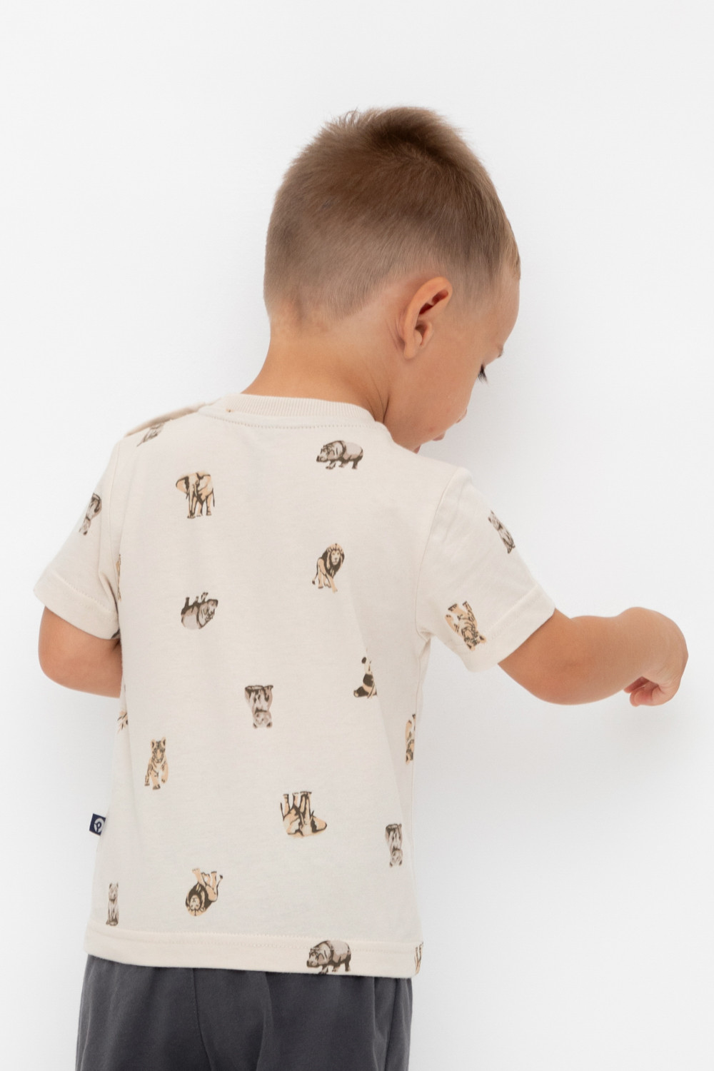 Футболка для мальчика из высококачественного трикотажного полотна. Оригинальная набивка выполнена из стойких текстильных гипоаллергенных красителей. Для удобства на плече застежка на кнопки.