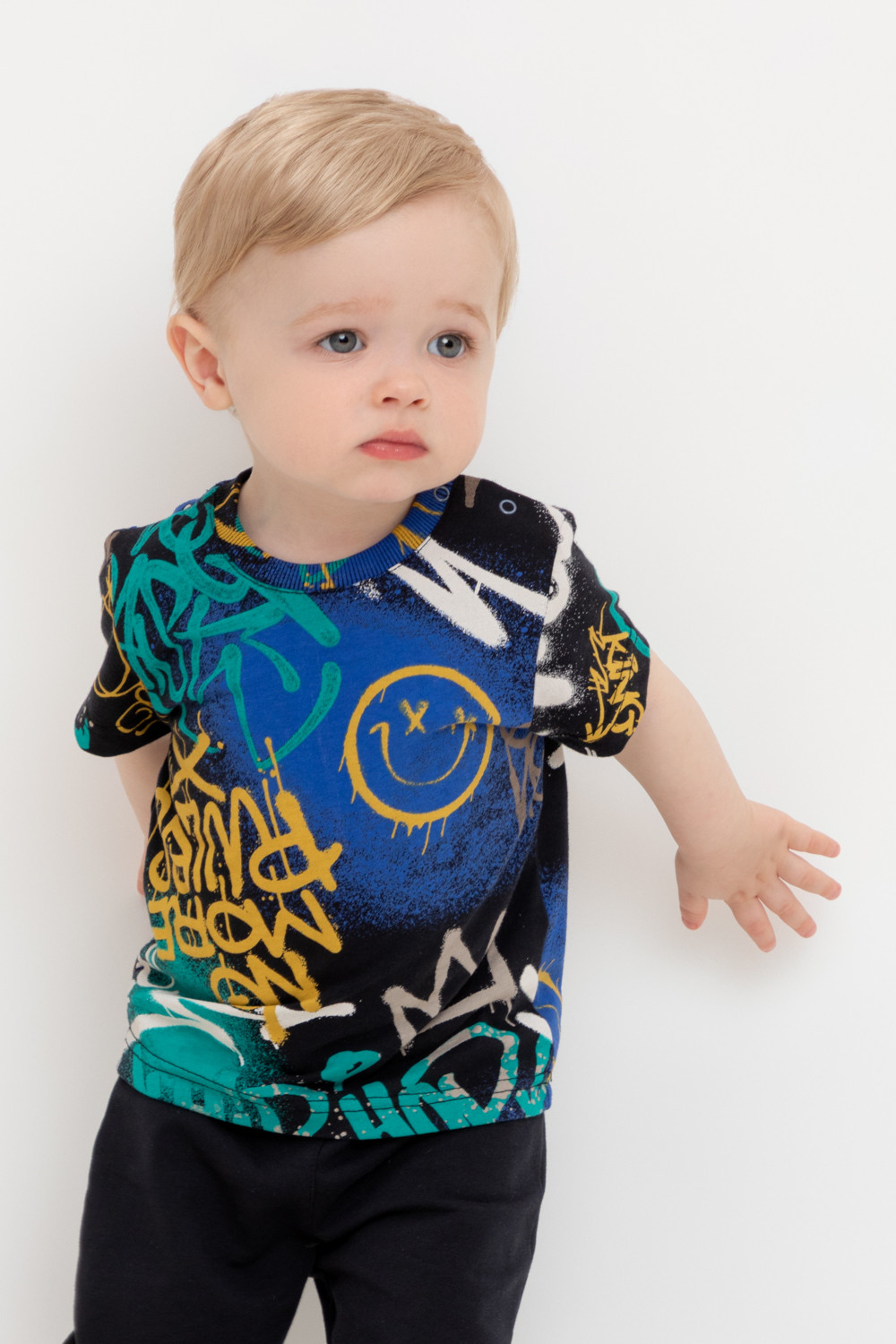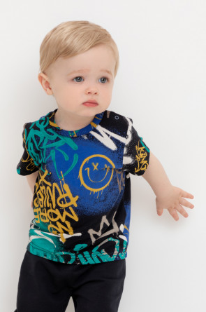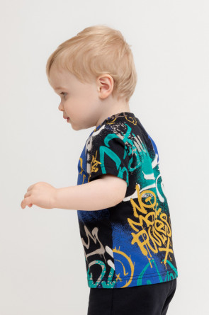 Футболка для мальчика из высококачественного трикотажного полотна. Оригинальная набивка выполнена из стойких текстильных красителей.