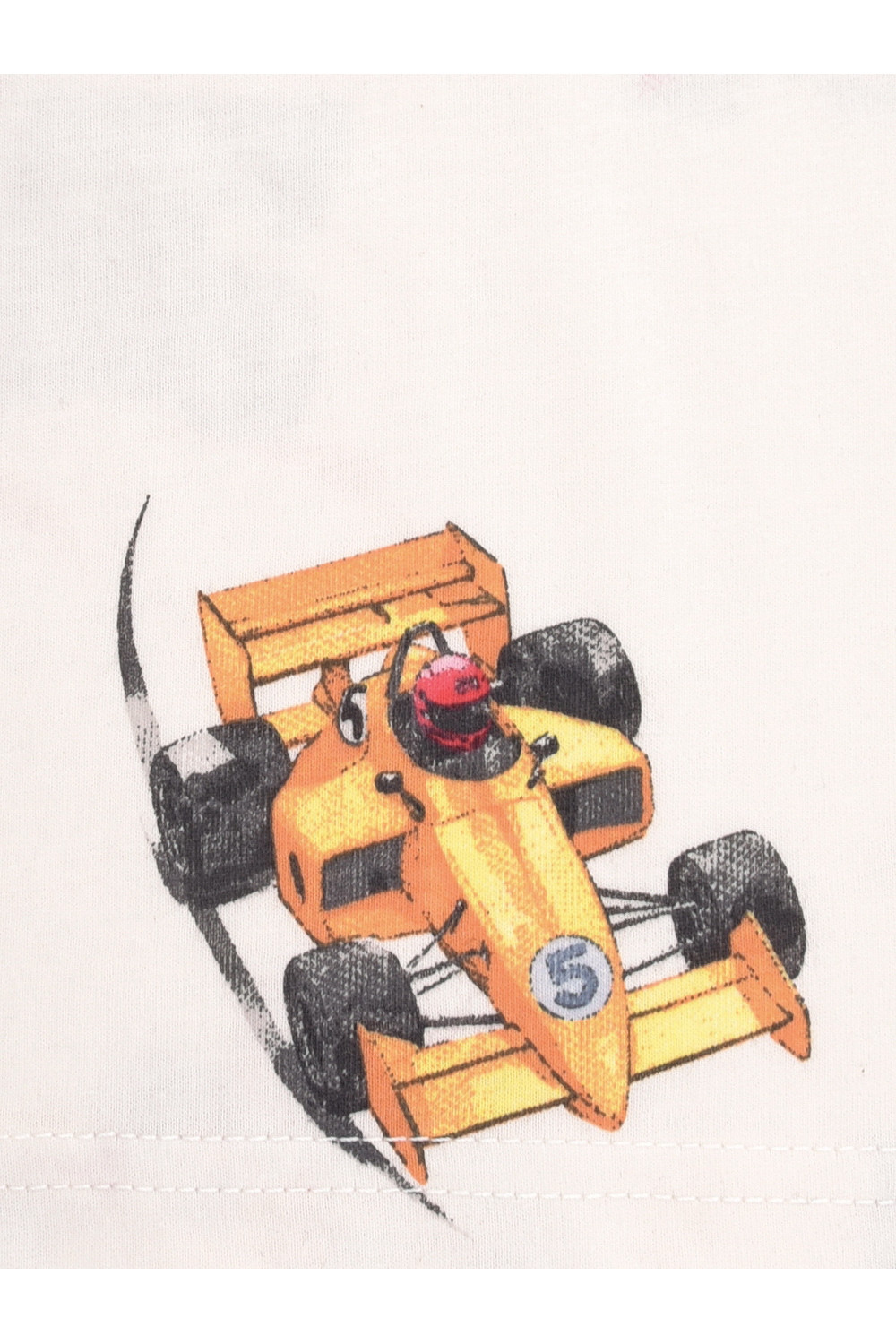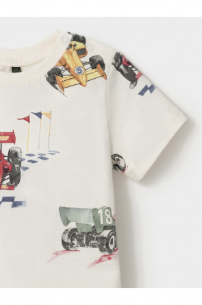 Футболка для мальчика из высококачественного трикотажного полотна. Застёгивается на кнопки на плече. Оригинальный рисунок выполнен из стойких текстильных красителей. Изделие сохраняет цвет и форму после многократных стирок. Все трикотажные полотна производятся в соответствии с нормами швейцарского сертификата ЭкоТекс.