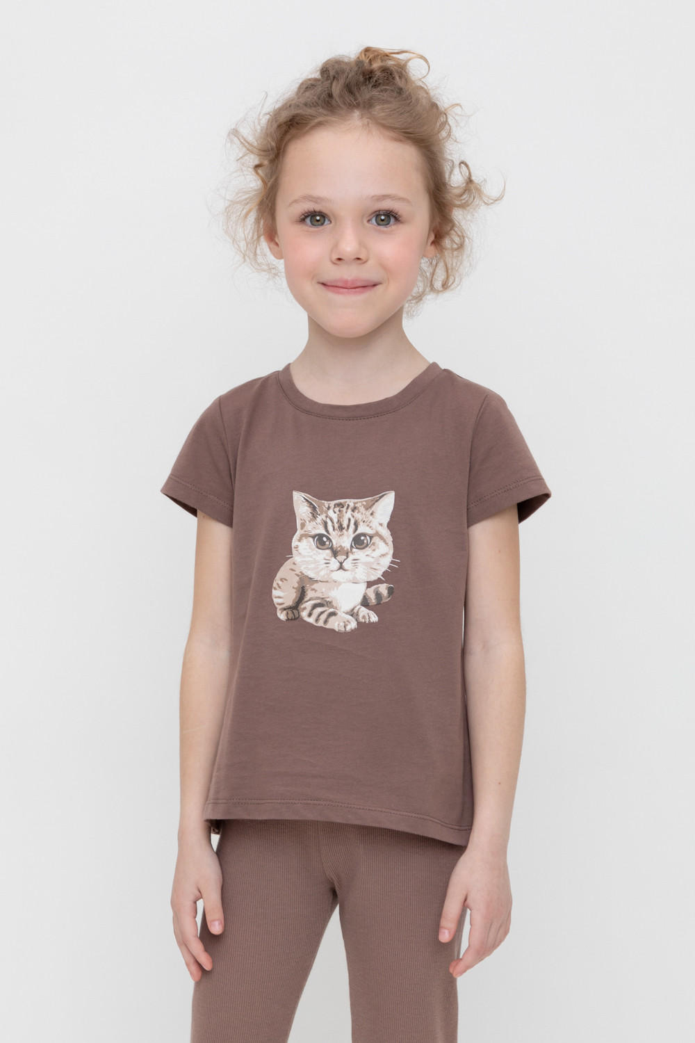 Футболка для девочки из высококачественного трикотажного полотна. Оригинальный принт выполнен из стойких текстильных красителей.