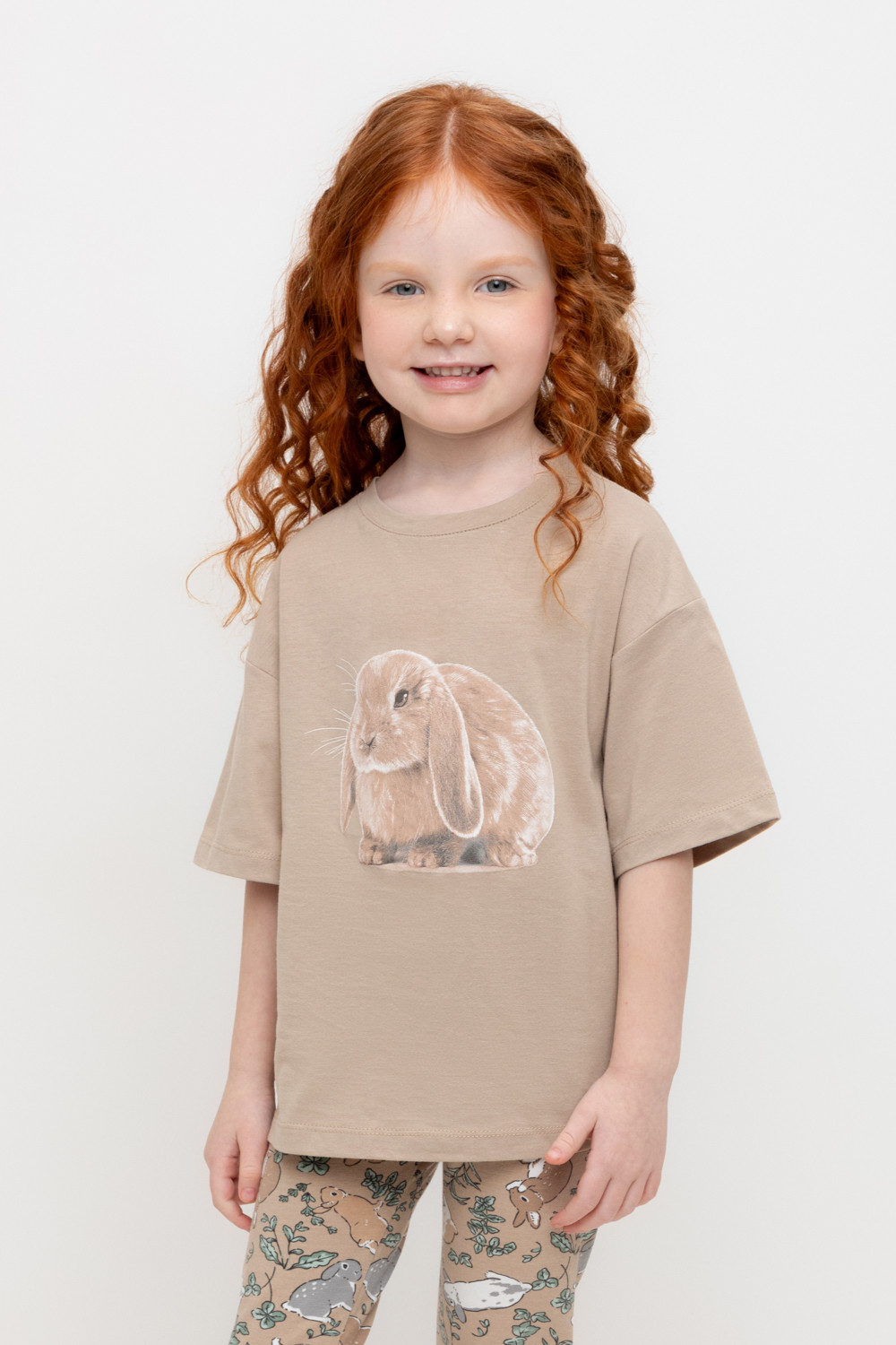 Футболка для девочки с принтом из высококачественного трикотажного полотна.