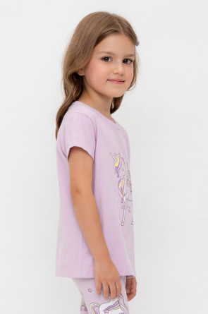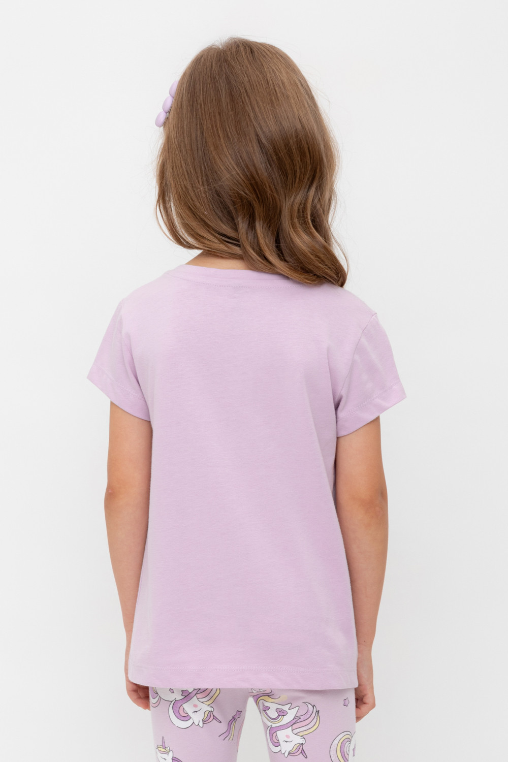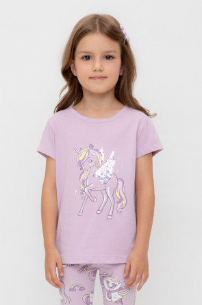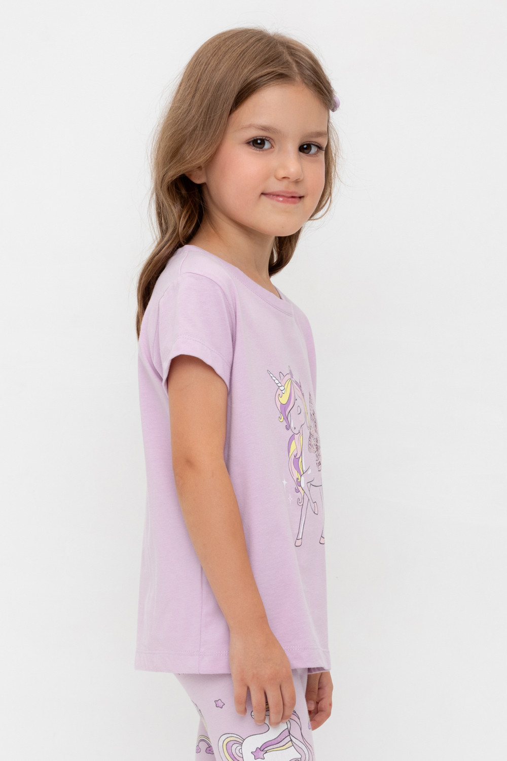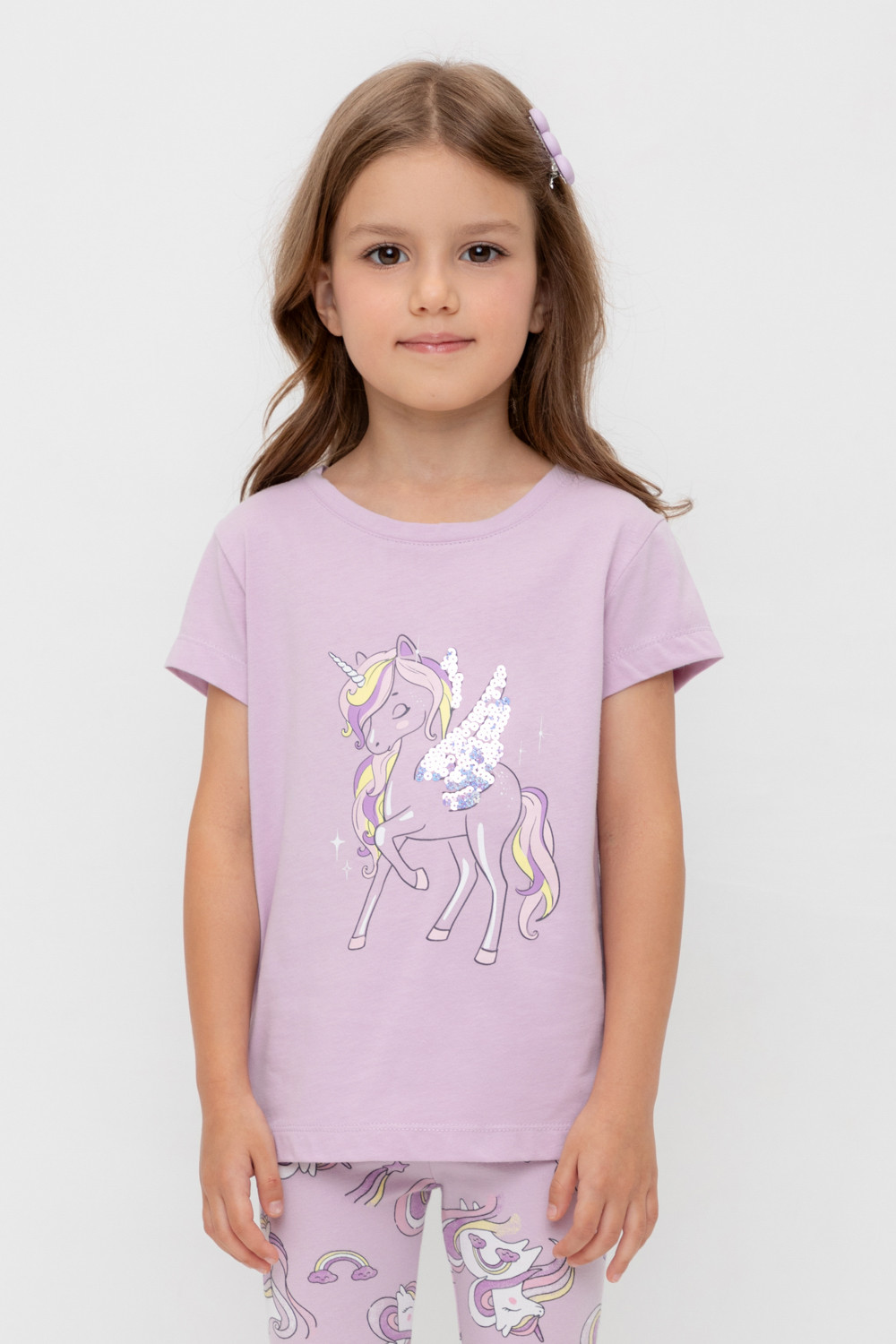 Футболка для девочки из высококачественного трикотажного полотна. Оригинальный принт выполнен из стойких текстильных гипоаллергенных красителей. Для удобства одевания на плече в размерах 92 и 98 есть застежка на кнопки.