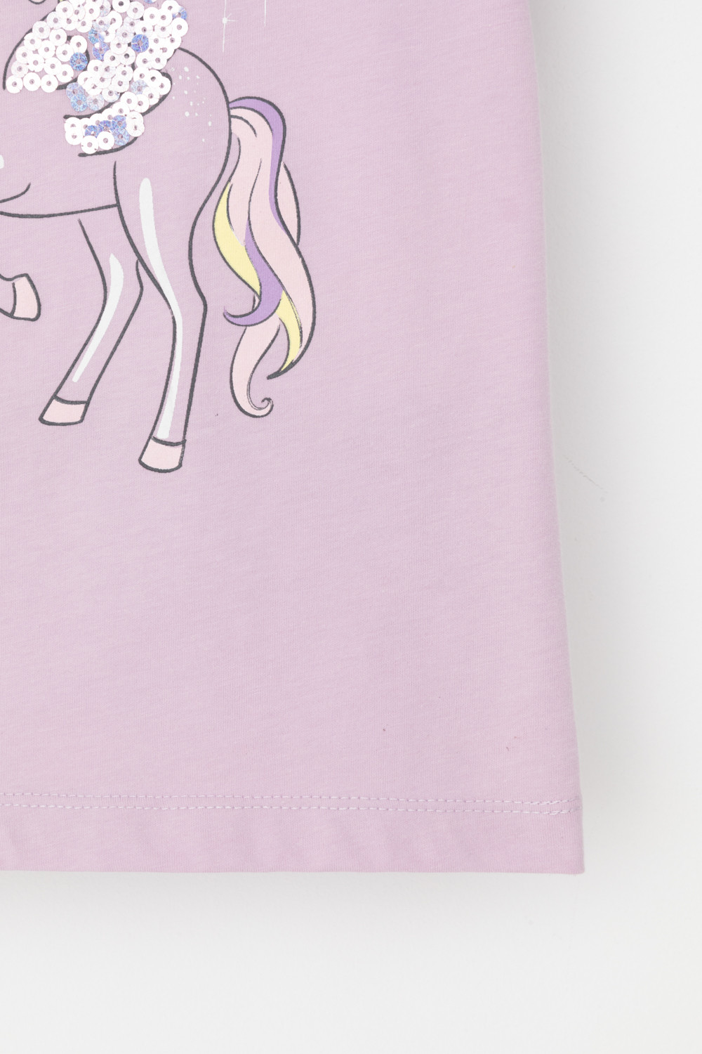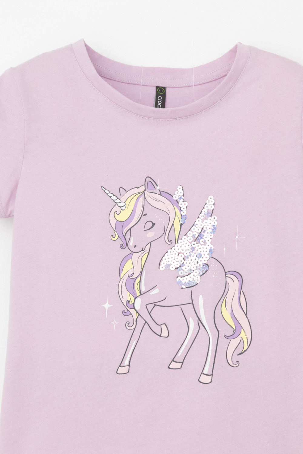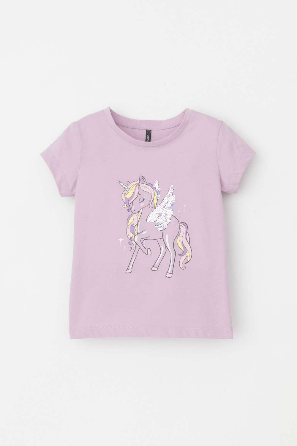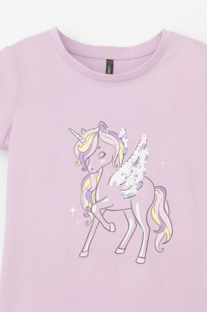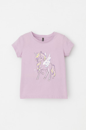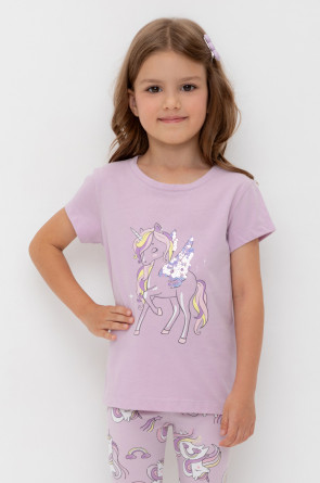 Футболка для девочки из высококачественного трикотажного полотна. Оригинальный принт выполнен из стойких текстильных гипоаллергенных красителей. Для удобства одевания на плече в размерах 92 и 98 есть застежка на кнопки.