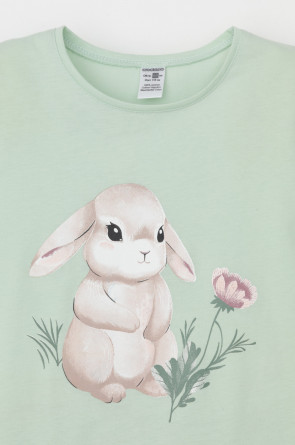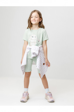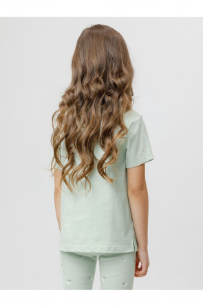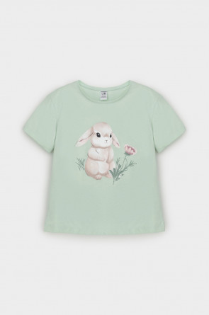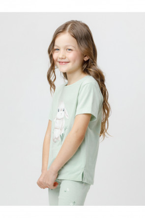 Футболка для девочки из гладкого трикотажа, произведённого из высококачественного натурального хлопка. Для удобства в размерах 92 и 98 имеется застежка на кнопки на спинке. Оригинальный принт выполнен из стойких текстильных гипоаллергенных красителей. Изделие сохраняет цвет и форму после многократных стирок.