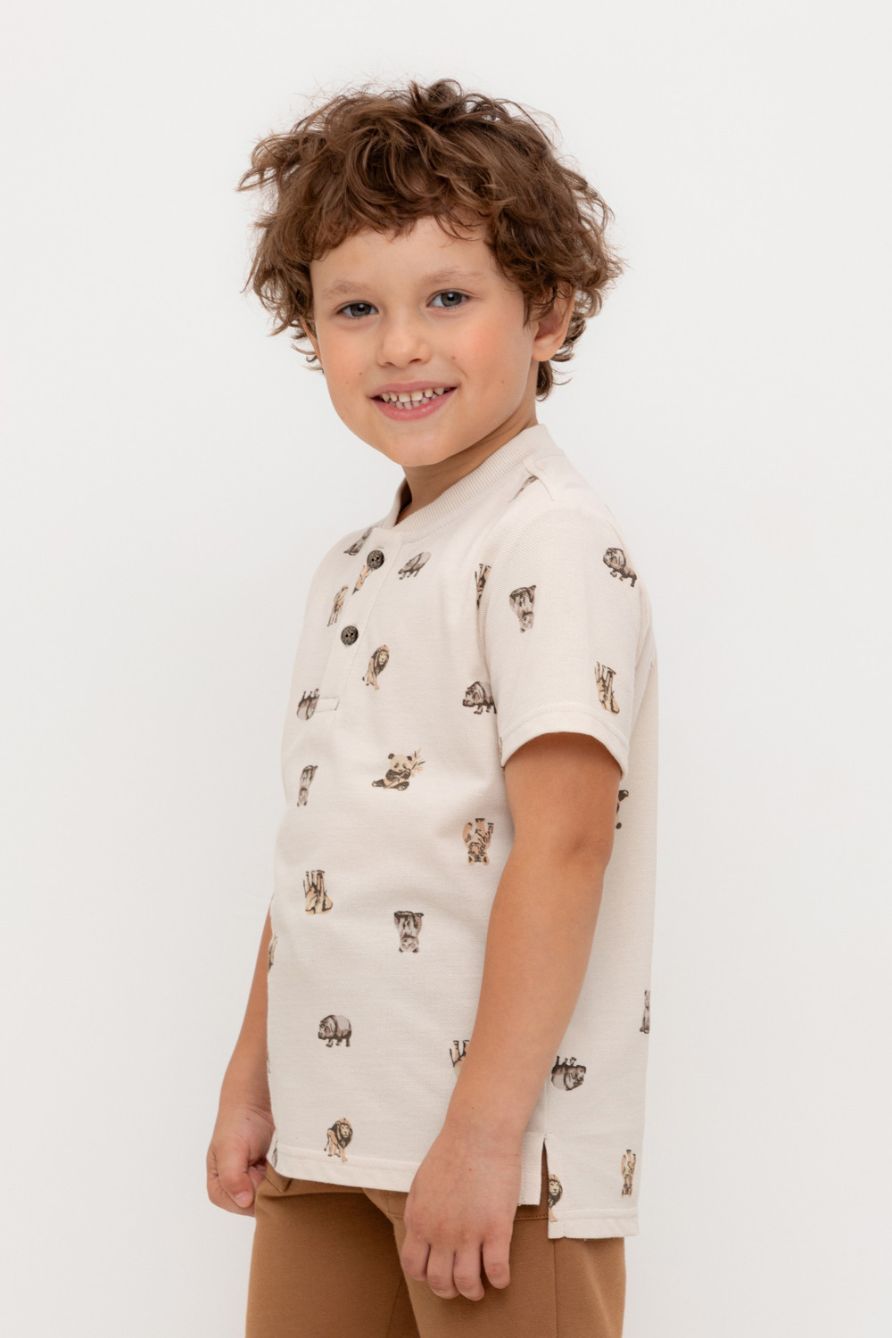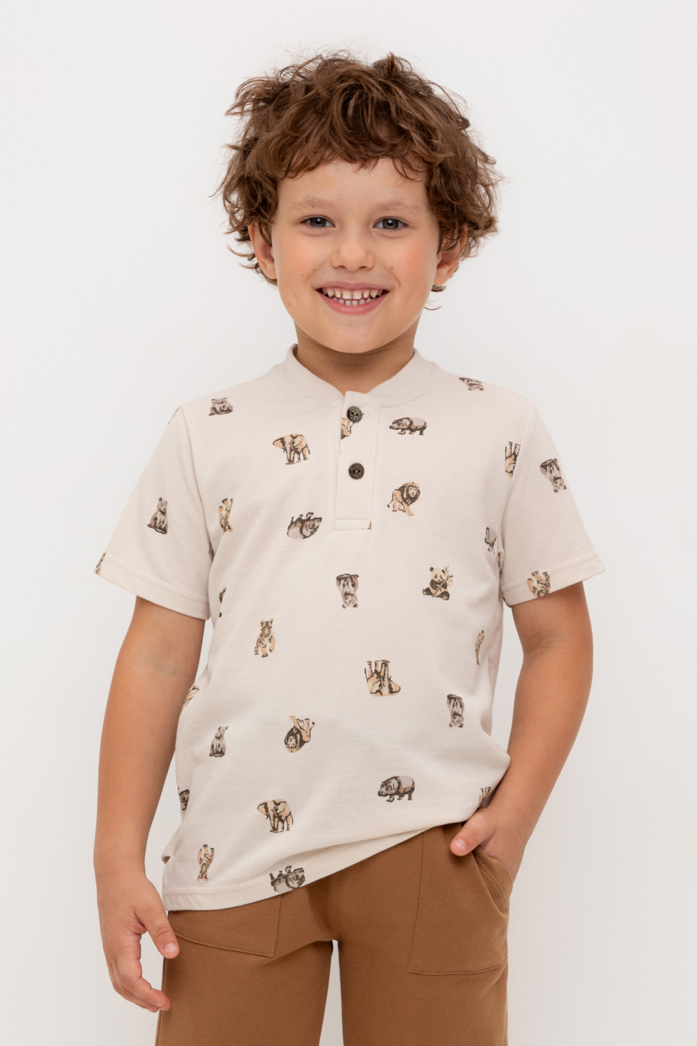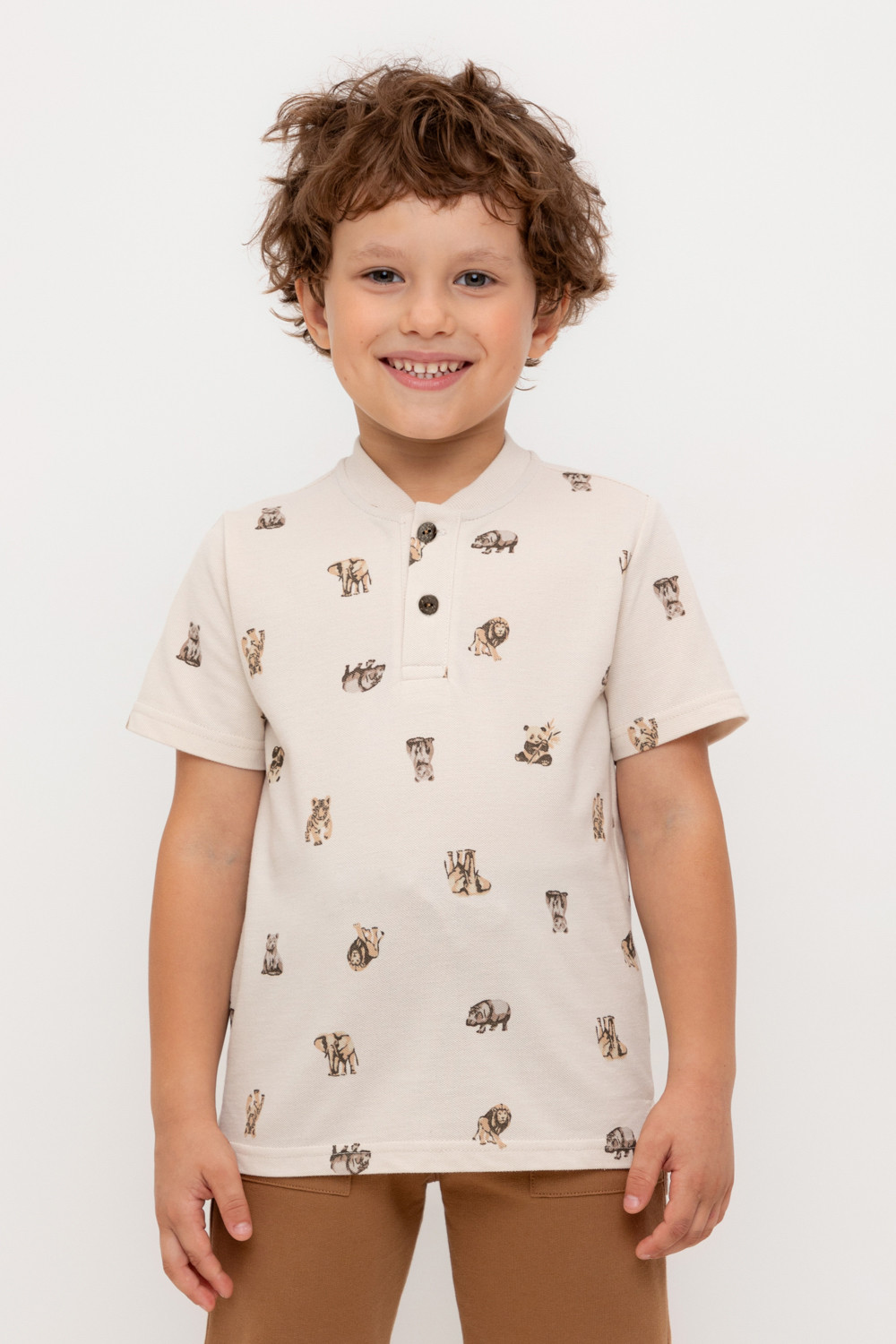 Поло для мальчика. Изготовлено из высококачественного трикотажного полотна пике. У изделия вязаный воротник и застежка спереди на пуговицы.