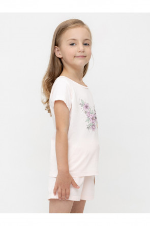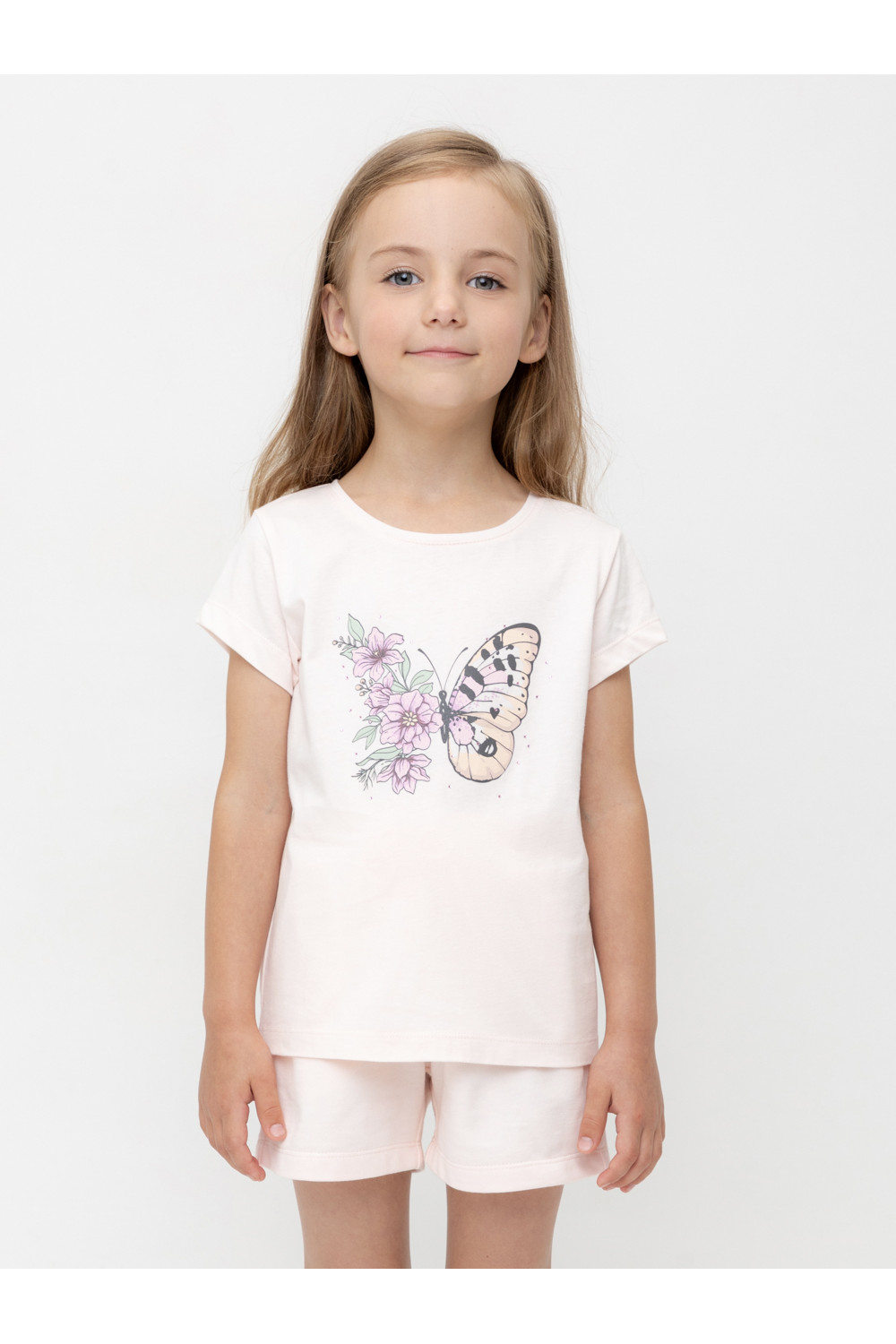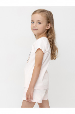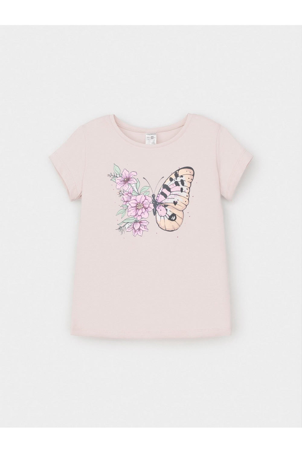 Футболка для девочки из гладкого трикотажа, произведённого из высококачественного натурального хлопка. Для удобства одевания имеется застежка на кнопки в размерах 92 и 98. Оригинальный принт выполнен из стойких текстильных гипоаллергенных красителей и украшен стразами. Изделие сохраняет цвет и форму после многократных стирок.