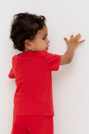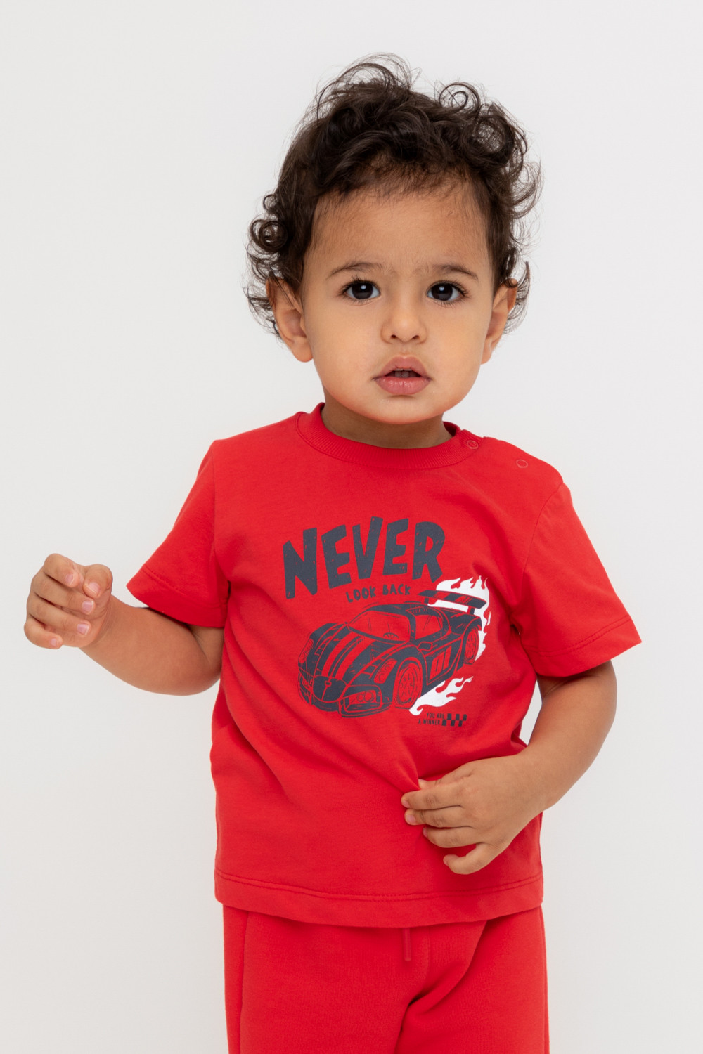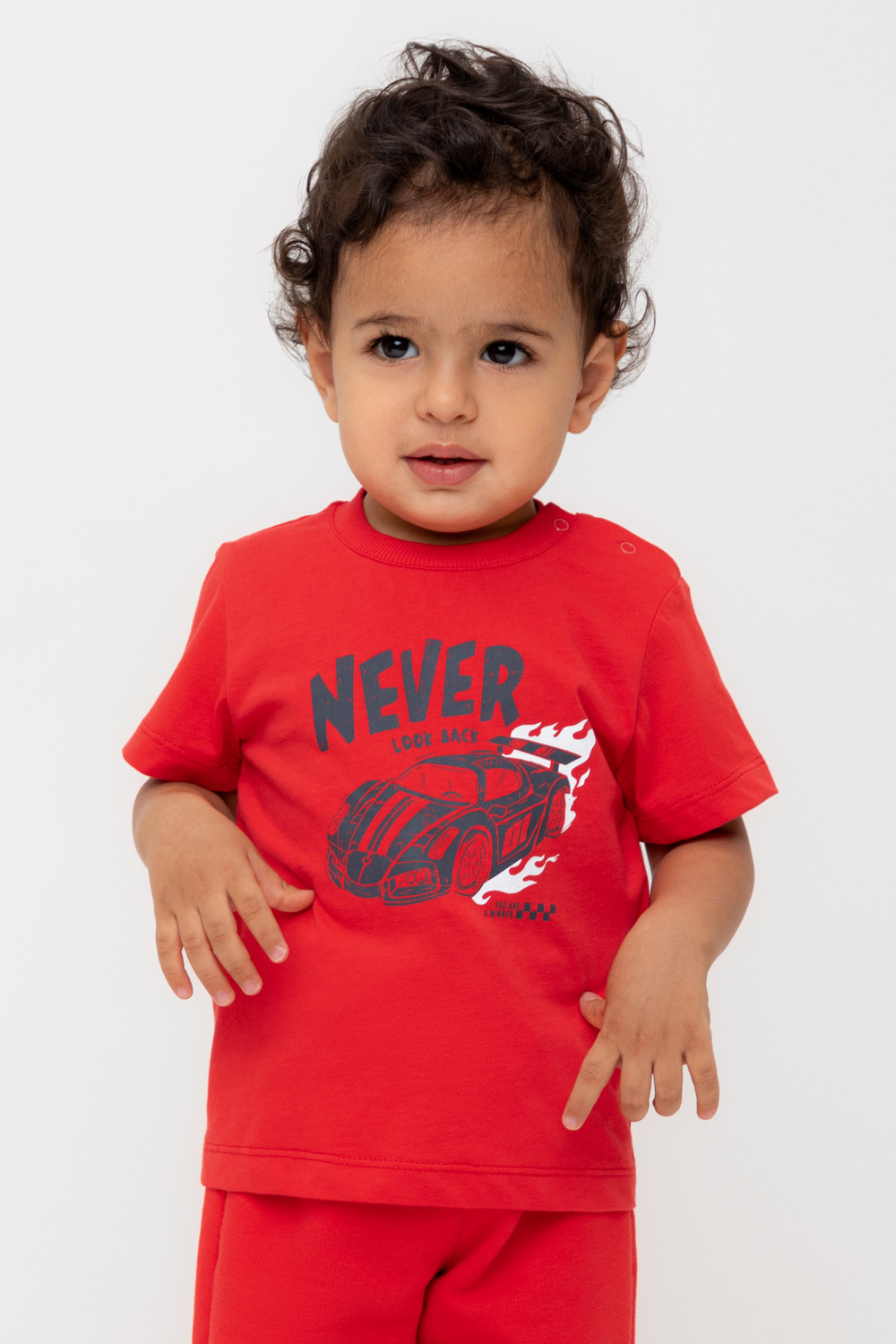 Футболка для мальчика из высококачественного трикотажного полотна. Оригинальный принт выполнен из стойких текстильных гипоаллергенных красителей. Для удобства на плече застежка на кнопки.
