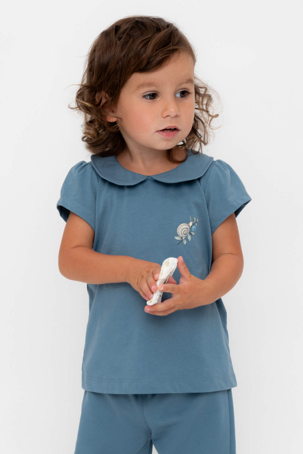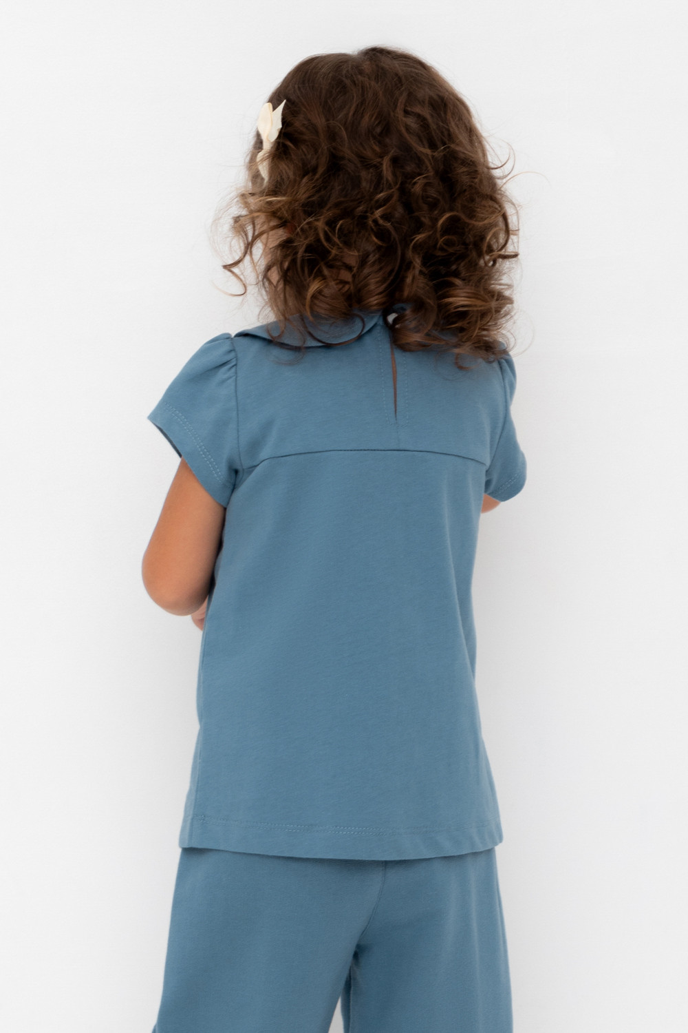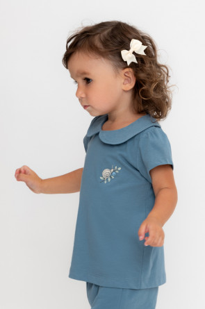 Футболка с воротничком для девочки из высококачественного трикотажного полотна. Оригинальный принт выполнен из стойких текстильных гипоаллергенных красителей.