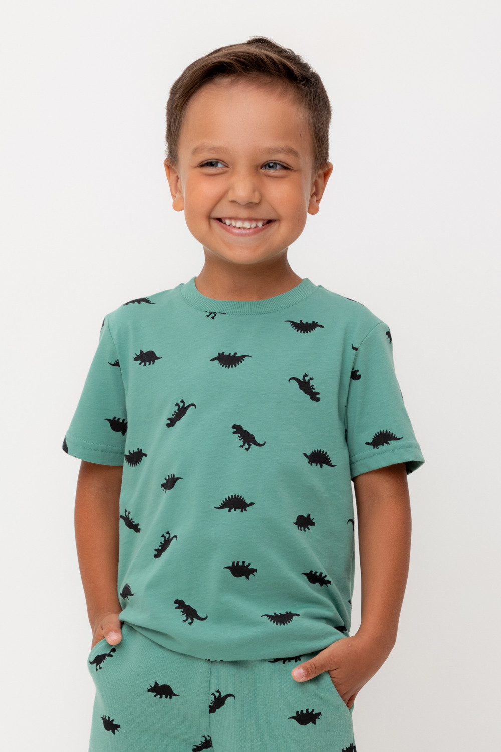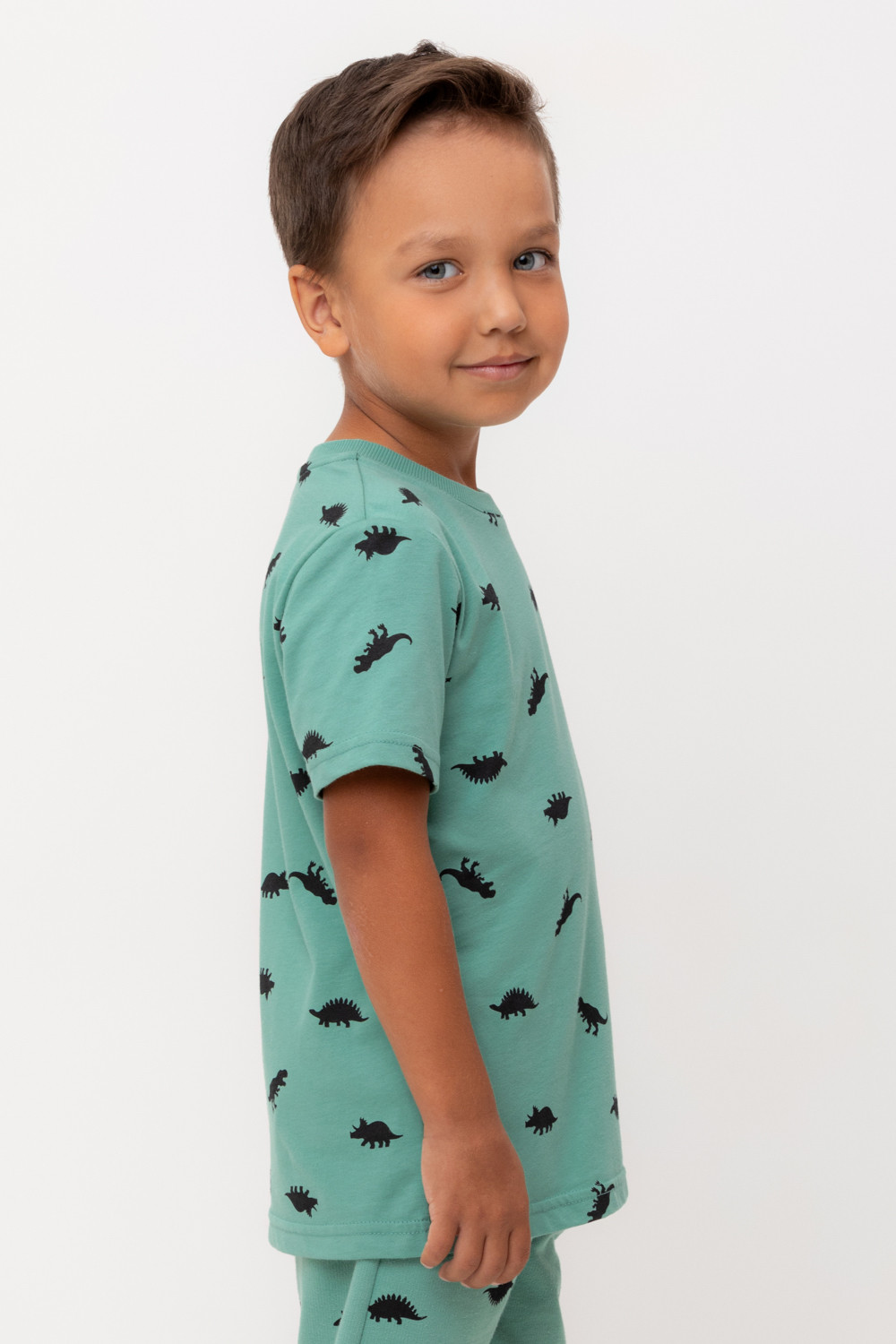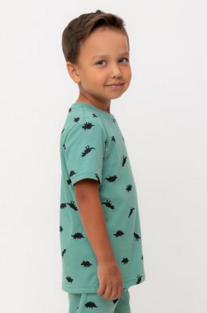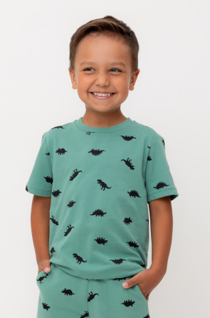 Футболка для мальчика из высококачественного трикотажного полотна. Оригинальная набивка выполнена из стойких текстильных гипоаллергенных красителей. Для удобства в размерах 92 и 98 на плече есть застежка на кнопки.