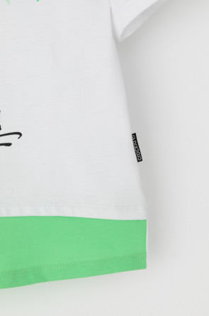 Футболка с капюшоном для мальчика из высококачественного трикотажного полотна. Оригинальный принт выполнен из стойких текстильных гипоаллергенных красителей.