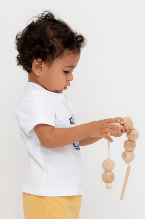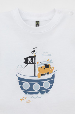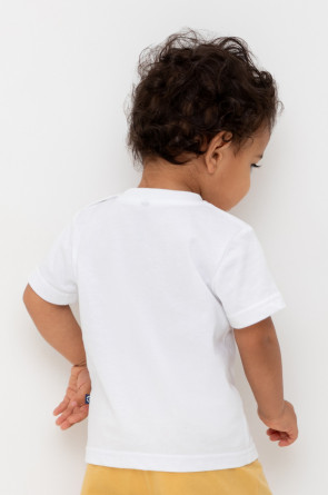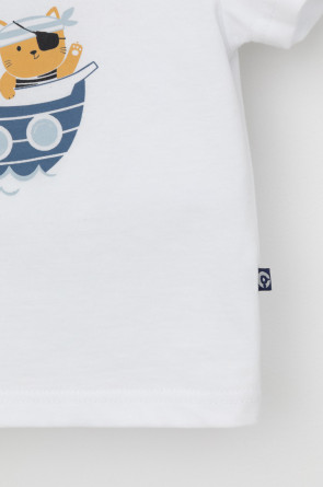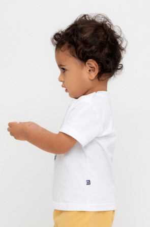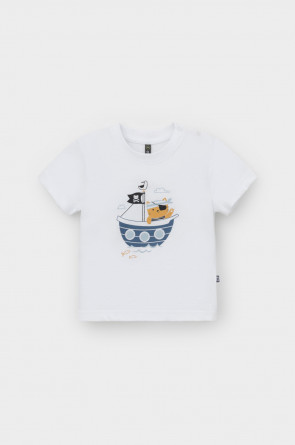 Футболка для мальчика из высококачественного трикотажного полотна. Оригинальный принт выполнен из стойких текстильных гипоаллергенных красителей. Для удобства на плече застежка на кнопки.