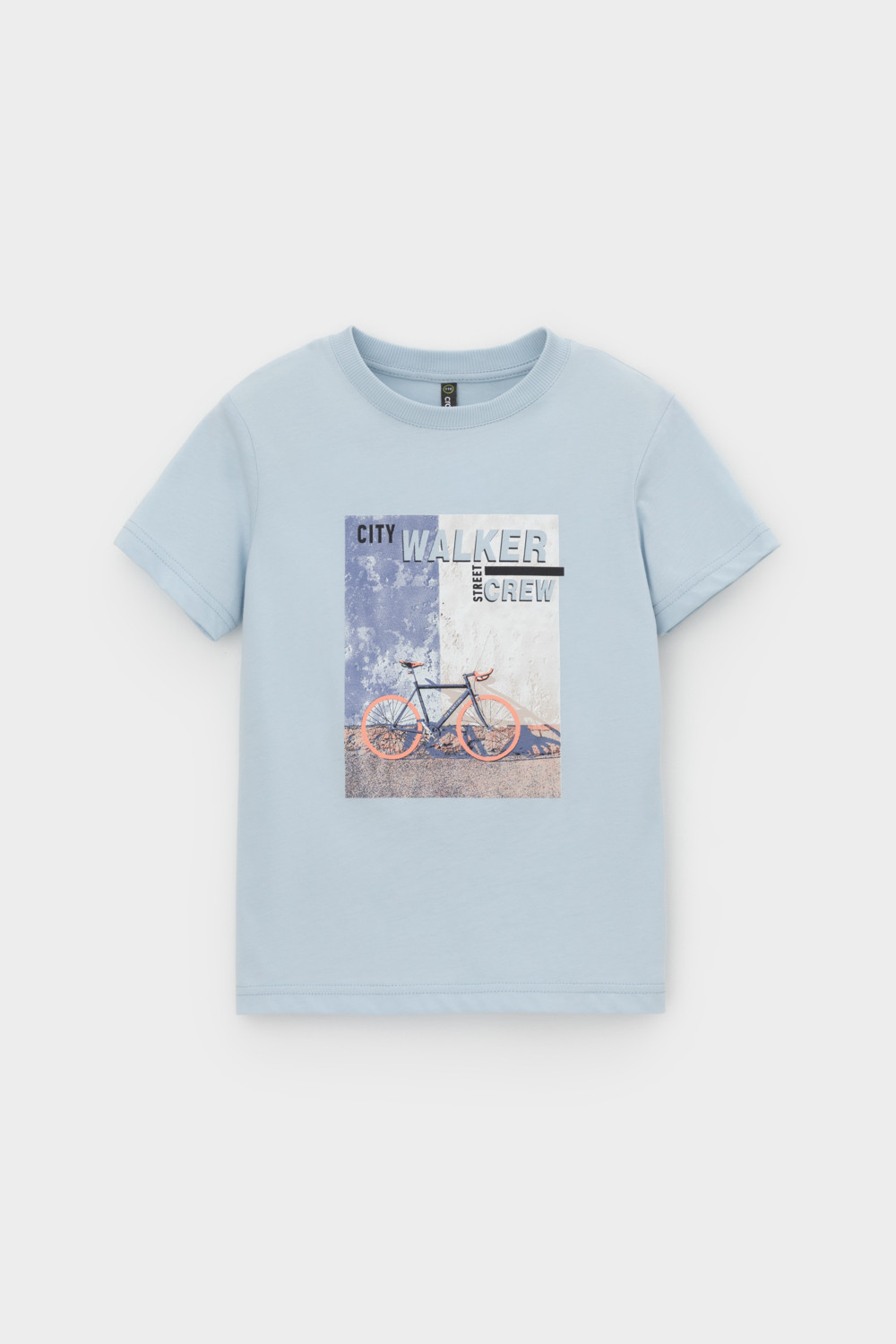 Футболка для мальчика из высококачественного трикотажного полотна. Оригинальный принт выполнен из стойких текстильных гипоаллергенных красителей. Для удобства в размерах 92 и 98 на плече есть застежка на кнопки.