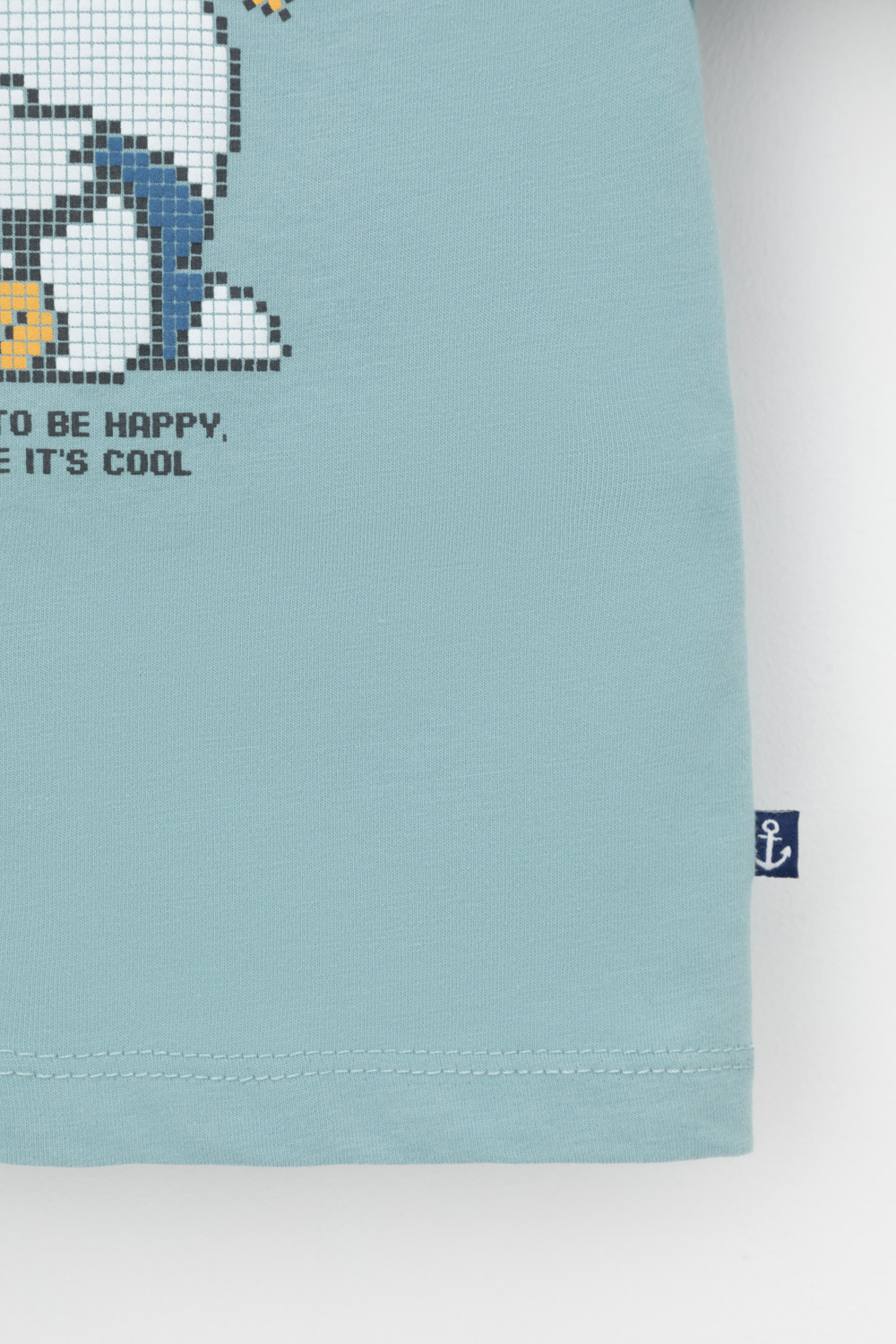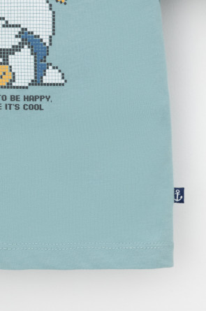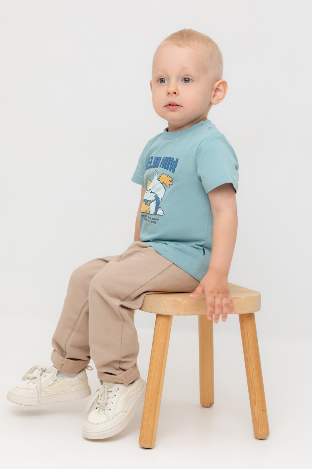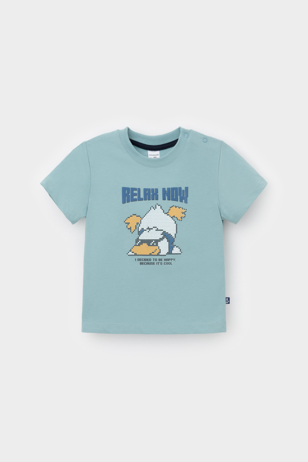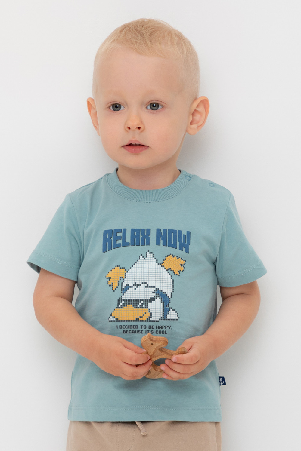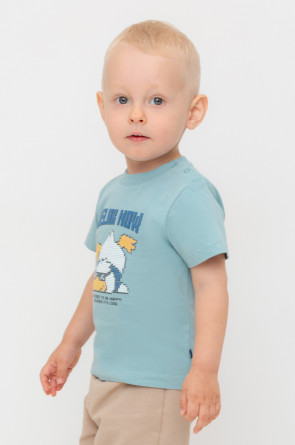 Футболка для мальчика из высококачественного трикотажного полотна. Оригинальный принт выполнен из стойких текстильных гипоаллергенных красителей. Для удобства на плече застежка на кнопки.
