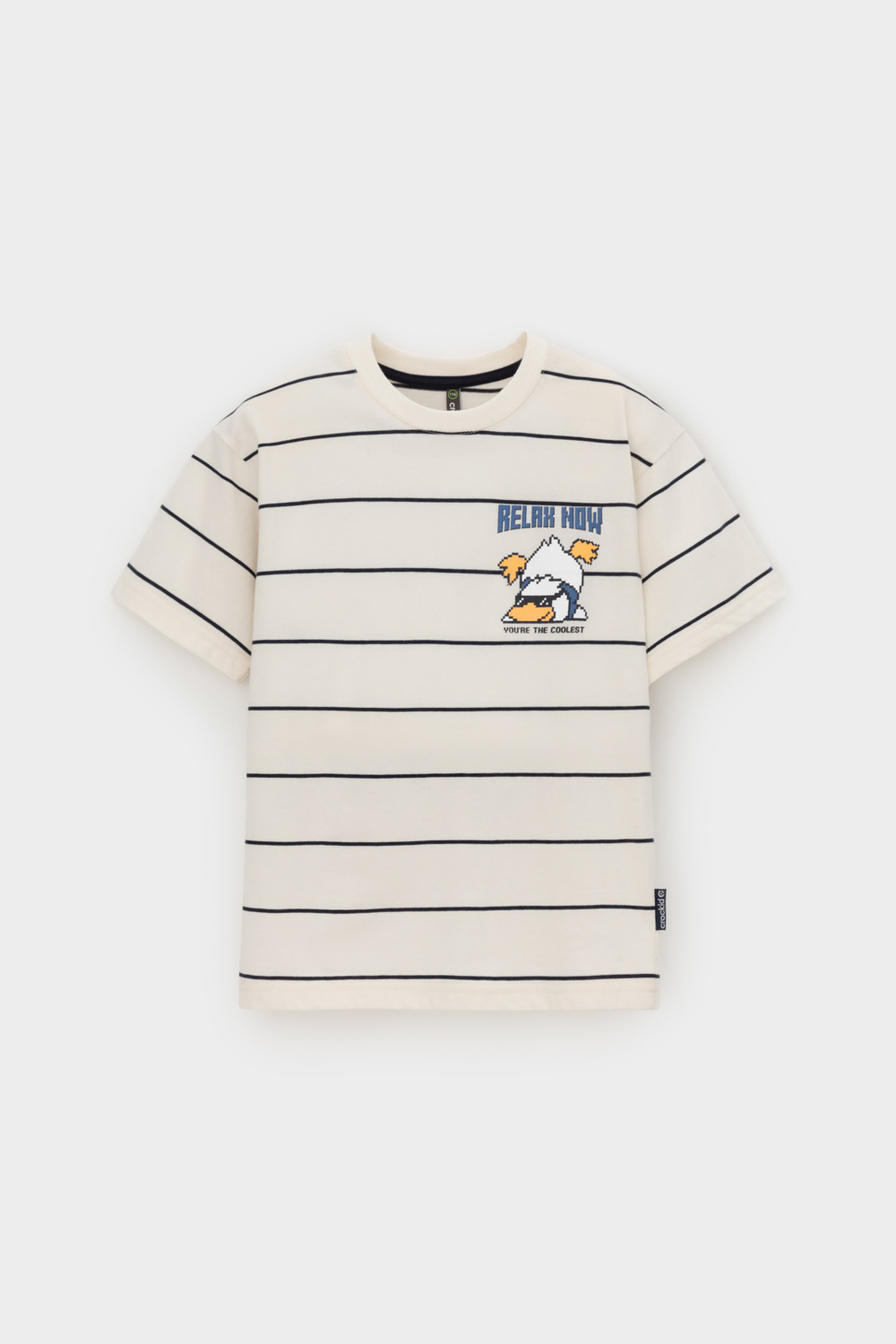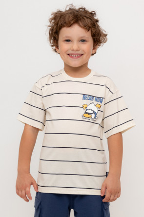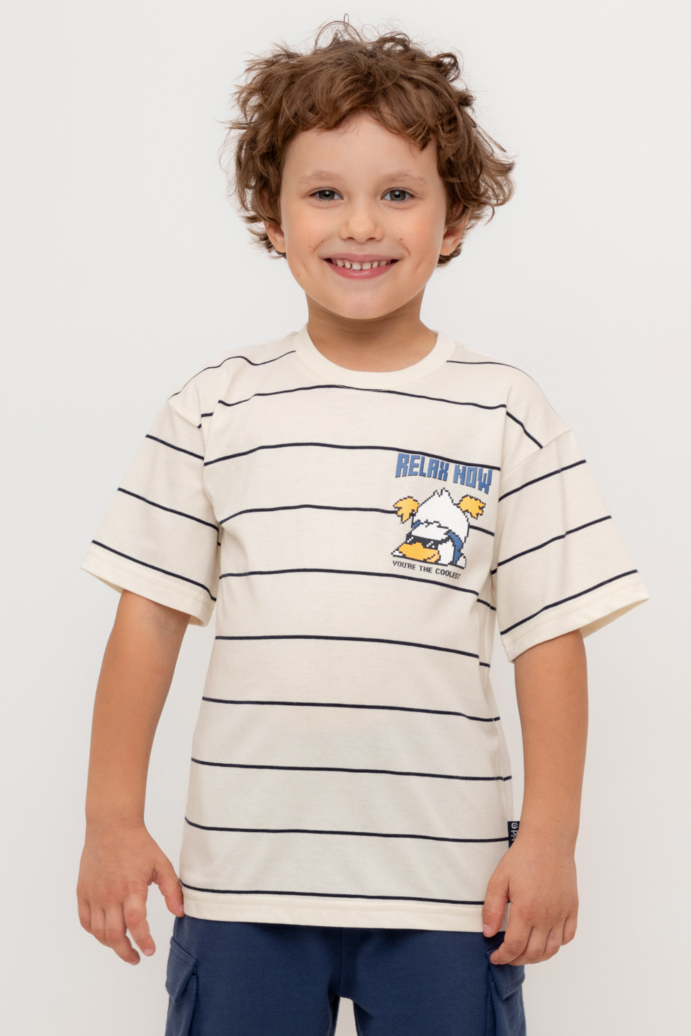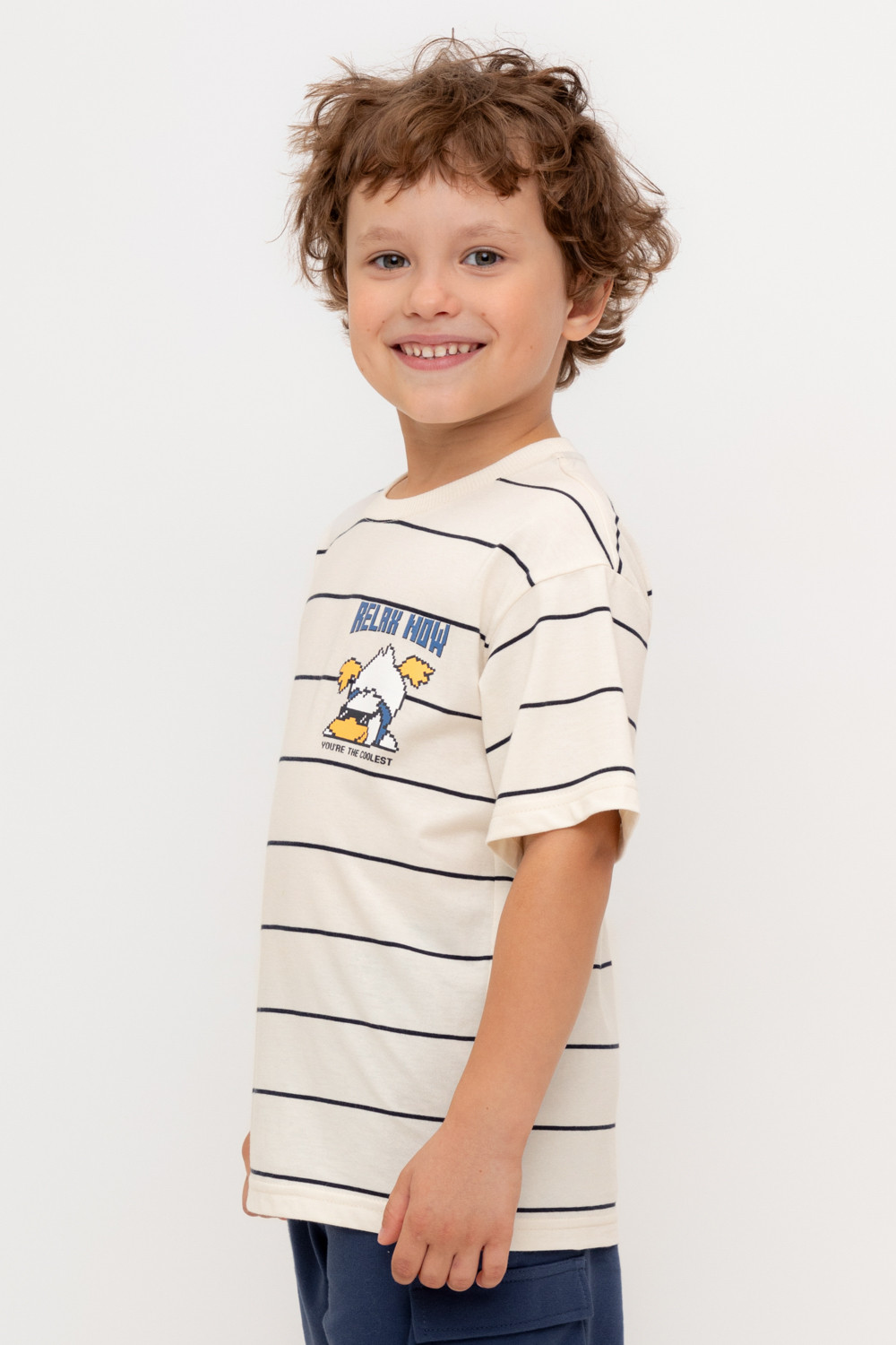 Футболка для мальчика из высококачественного трикотажного полотна. Оригинальная набивка и принт выполнены из стойких текстильных гипоаллергенных красителей. Для удобства в 92 и 98 размерах на спинке есть застежка на кнопки.
