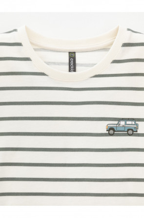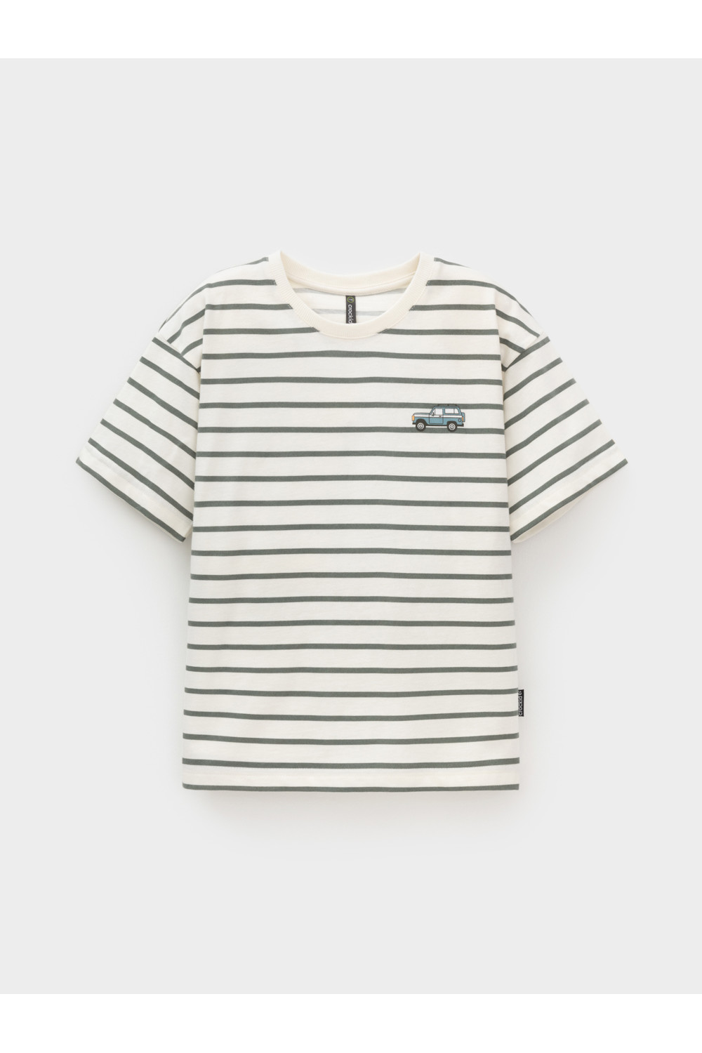 Футболка для мальчика из гладкого трикотажа, произведённого из высококачественного натурального хлопка. Для удобства одевания имеется застёжка на кнопки в размерах 92 и 98. Оригинальный принт выполнен из стойких текстильных гипоаллергенных красителей. Изделие сохраняет цвет и форму после многократных стирок. Все трикотажные полотна производятся в соответствии с нормами швейцарского сертификата ЭкоТекс.