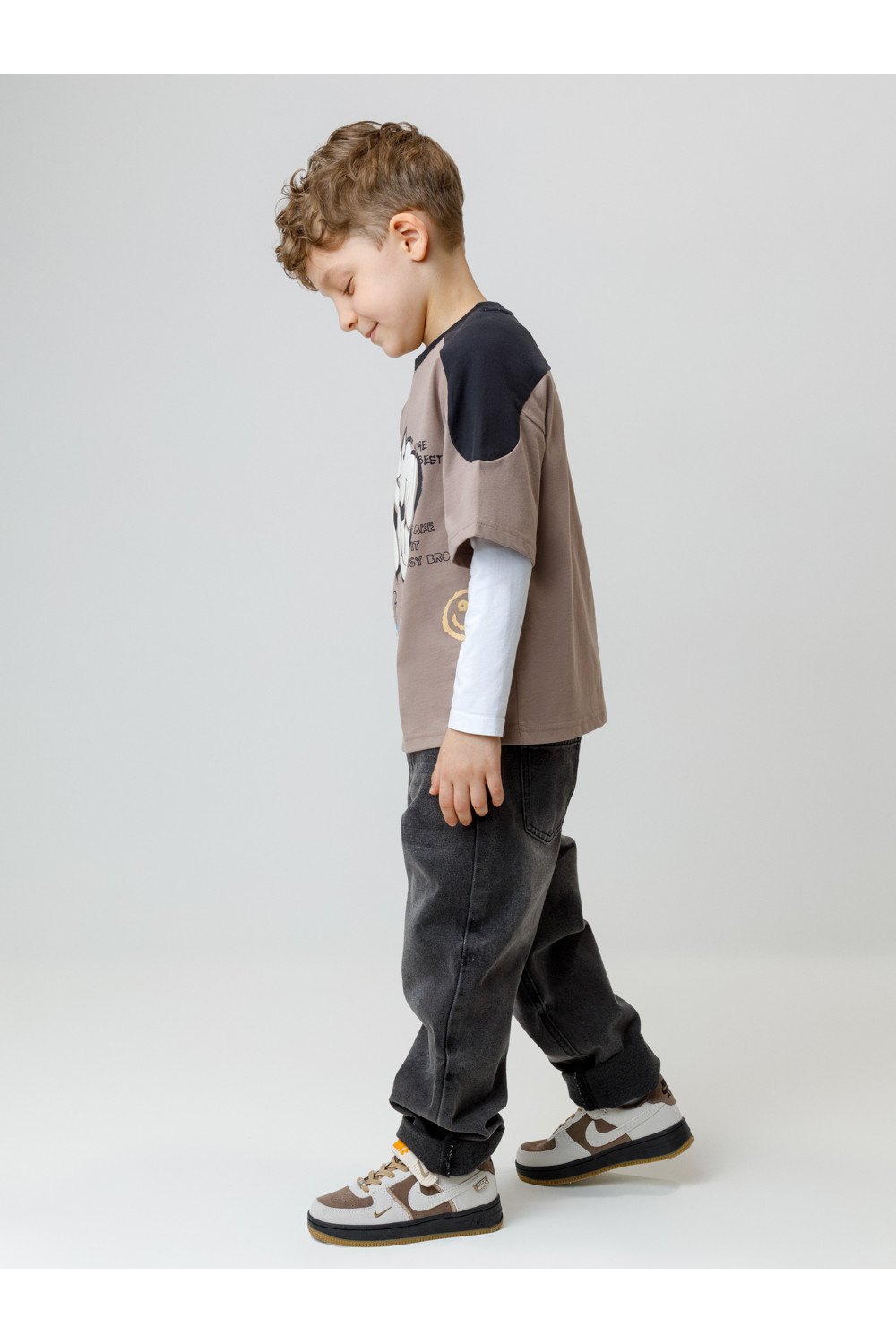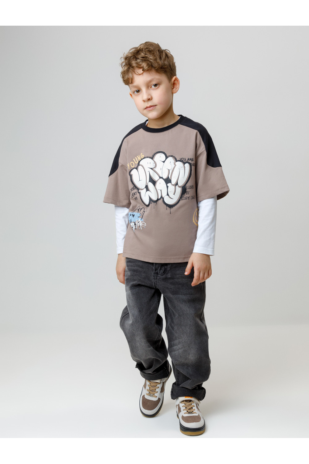 Футболка для мальчика из гладкого трикотажа, произведённого из высококачественного натурального хлопка. Для удобства одевания имеется застёжка на кнопки в размерах 92 и 98. Оригинальный принт выполнен из стойких текстильных гипоаллергенных красителей. Изделие сохраняет цвет и форму после многократных стирок. Все трикотажные полотна производятся в соответствии с нормами швейцарского сертификата ЭкоТекс.