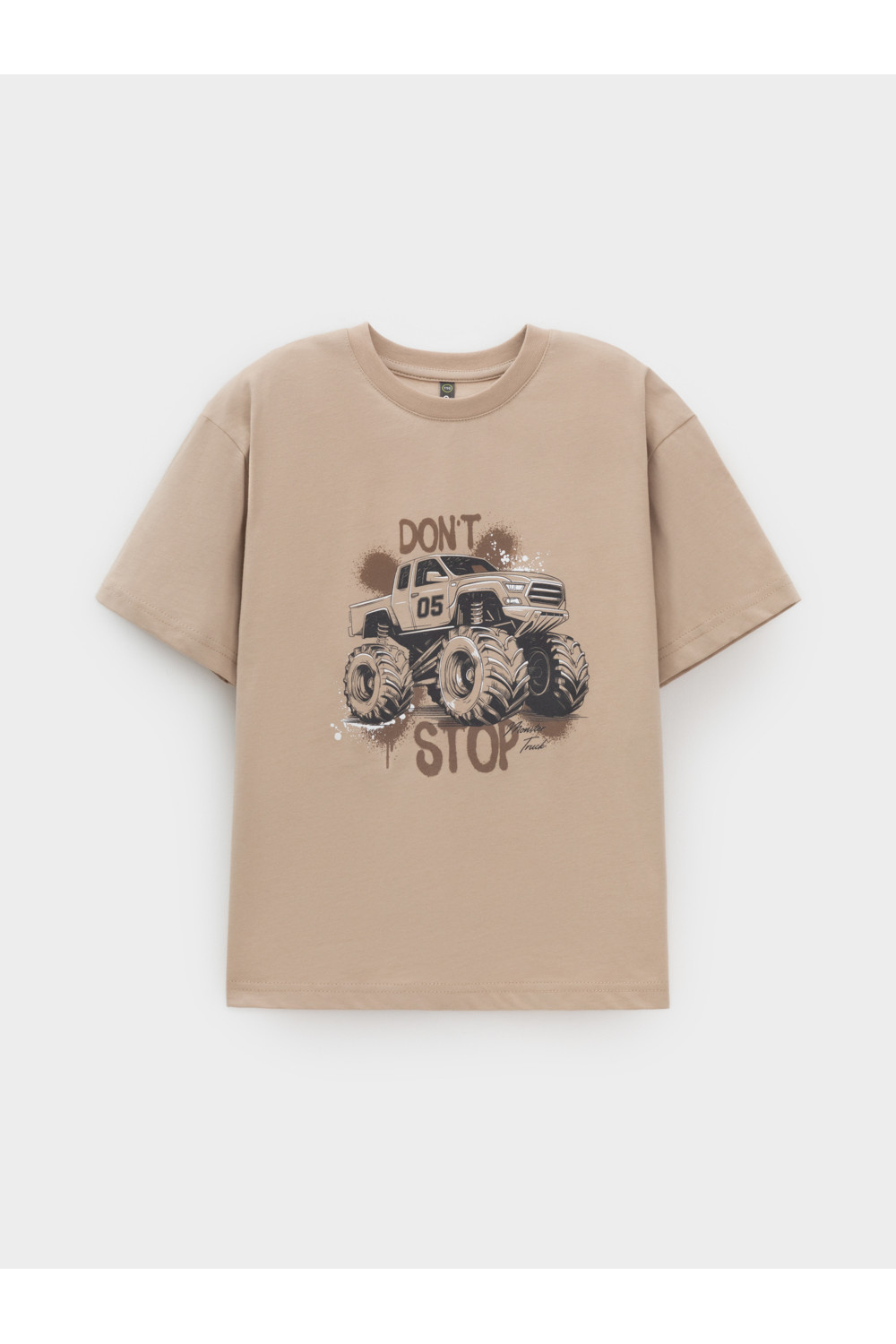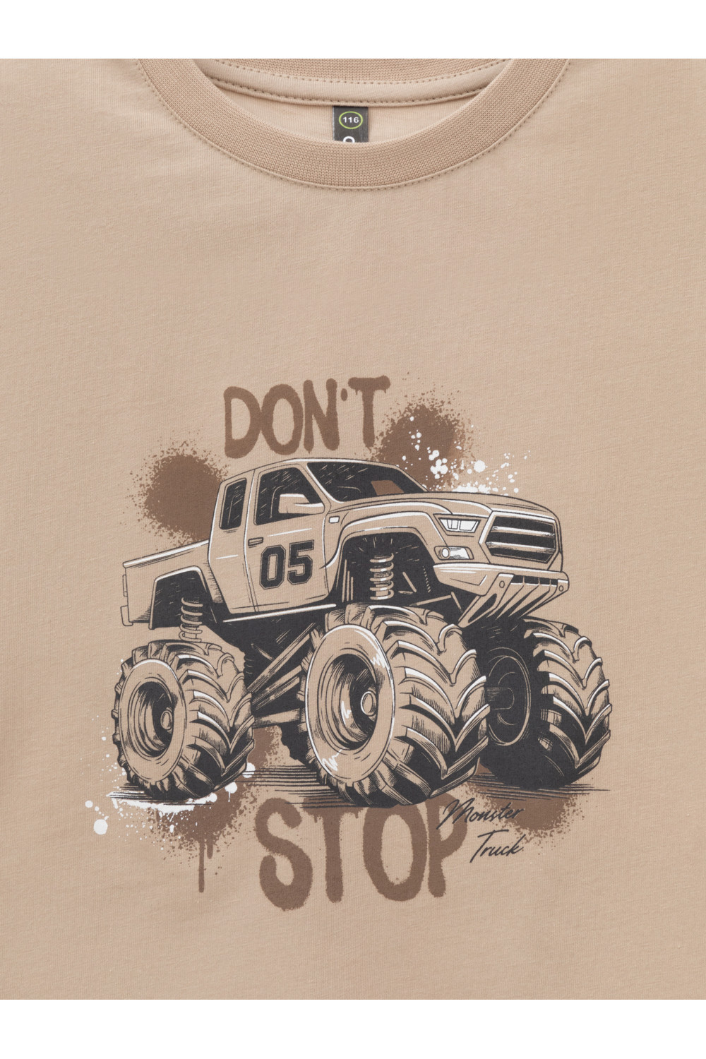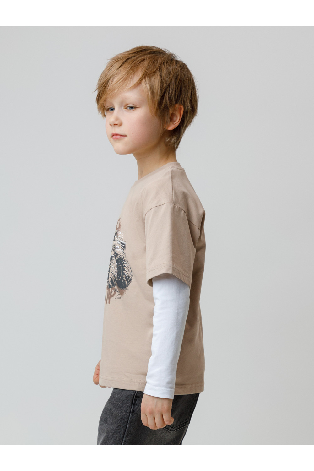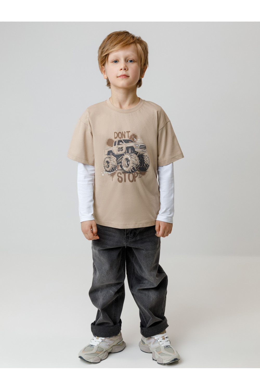 Футболка для мальчика из гладкого трикотажа, произведённого из высококачественного натурального хлопка. Для удобства одевания имеется застёжка на кнопки в размерах 92 и 98. Оригинальный принт выполнен из стойких текстильных гипоаллергенных красителей. Изделие сохраняет цвет и форму после многократных стирок. Все трикотажные полотна производятся в соответствии с нормами швейцарского сертификата ЭкоТекс.