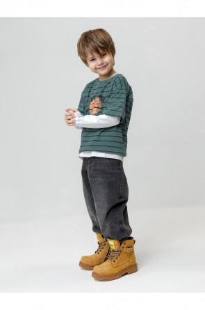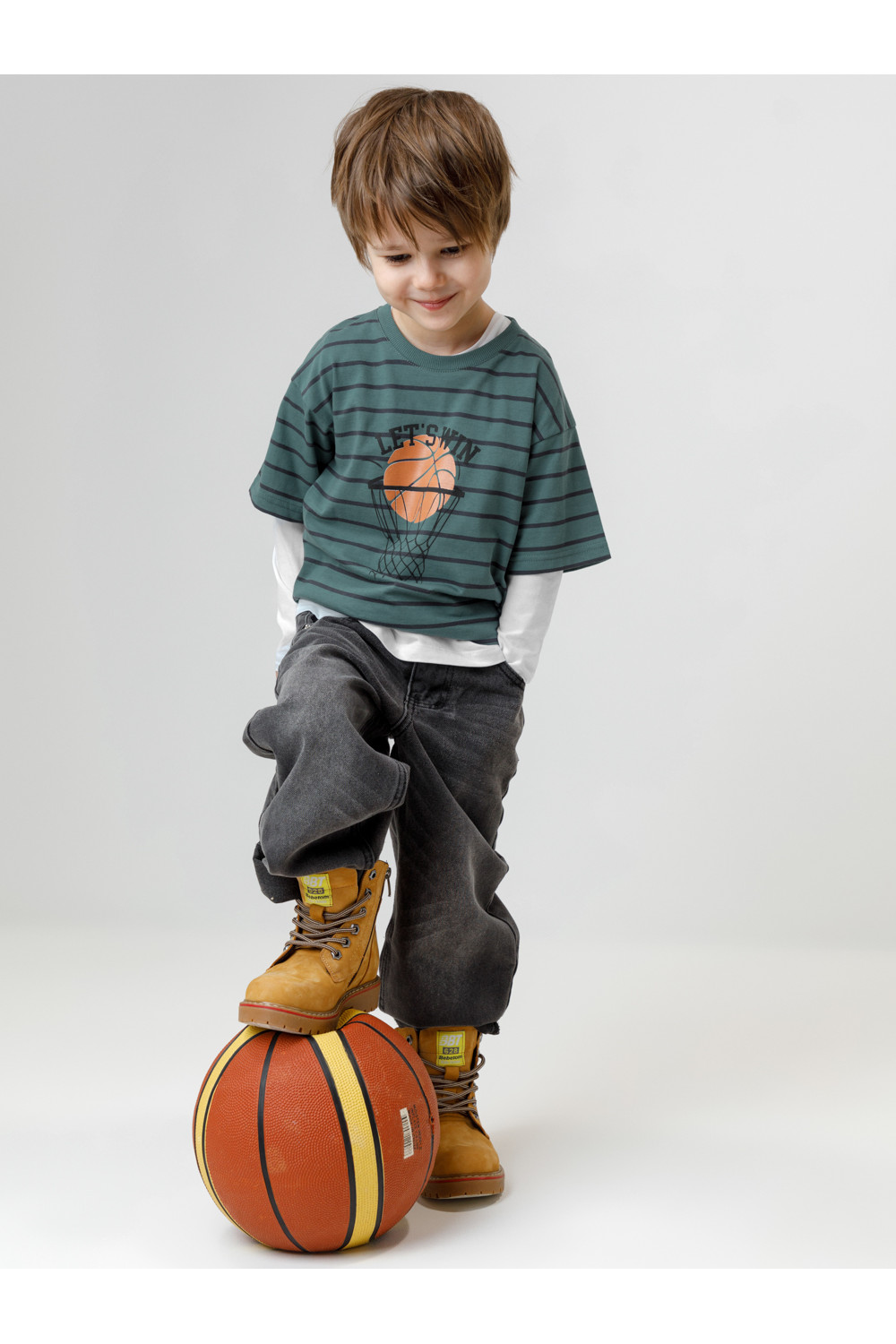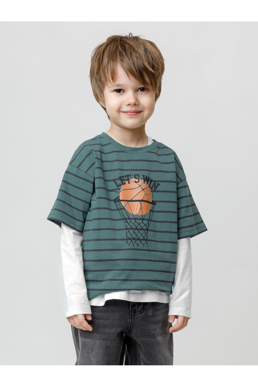 Футболка для мальчика из гладкого трикотажа, произведённого из высококачественного натурального хлопка. Для удобства одевания имеется застёжка на кнопки в размерах 92 и 98. Оригинальный принт выполнен из стойких текстильных гипоаллергенных красителей. Изделие сохраняет цвет и форму после многократных стирок. Все трикотажные полотна производятся в соответствии с нормами швейцарского сертификата ЭкоТекс.