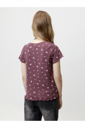 Футболка для девочки из эластичного трикотажа в рубчик. Оригинальный рисунок выполнен из стойких текстильных гипоаллергенных красителей. Изделие сохраняет цвет и форму после многократных стирок. Все трикотажные полотна производятся в соответствии с нормами швейцарского сертификата ЭкоТекс.
