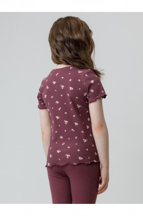 Футболка для девочки из эластичного трикотажа в рубчик. Оригинальный рисунок выполнен из стойких текстильных гипоаллергенных красителей. Изделие сохраняет цвет и форму после многократных стирок. Все трикотажные полотна производятся в соответствии с нормами швейцарского сертификата ЭкоТекс.