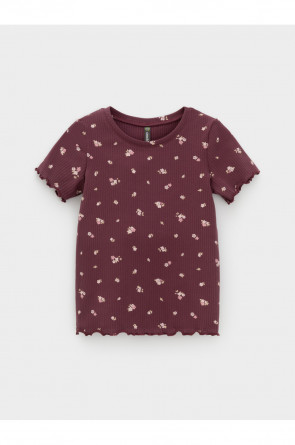 Футболка для девочки из эластичного трикотажа в рубчик. Оригинальный рисунок выполнен из стойких текстильных гипоаллергенных красителей. Изделие сохраняет цвет и форму после многократных стирок. Все трикотажные полотна производятся в соответствии с нормами швейцарского сертификата ЭкоТекс.