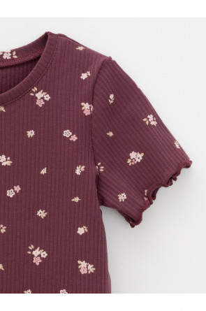 Футболка для девочки из эластичного трикотажа в рубчик. Оригинальный рисунок выполнен из стойких текстильных гипоаллергенных красителей. Изделие сохраняет цвет и форму после многократных стирок. Все трикотажные полотна производятся в соответствии с нормами швейцарского сертификата ЭкоТекс.