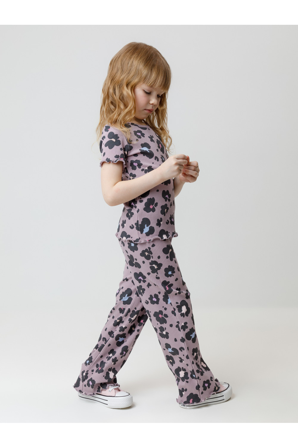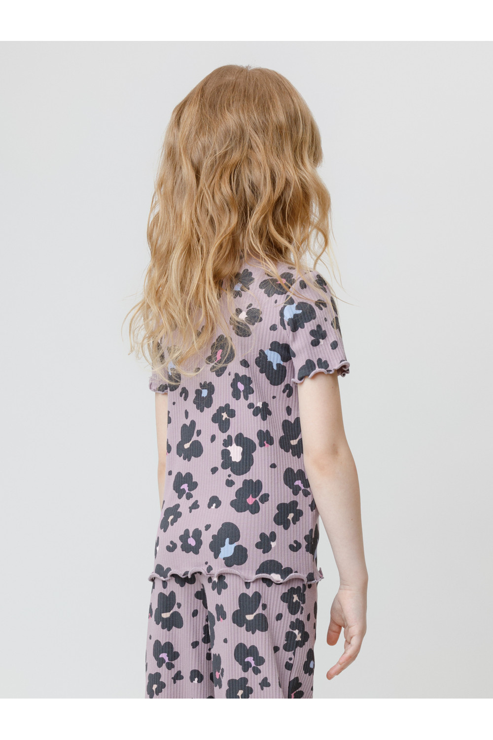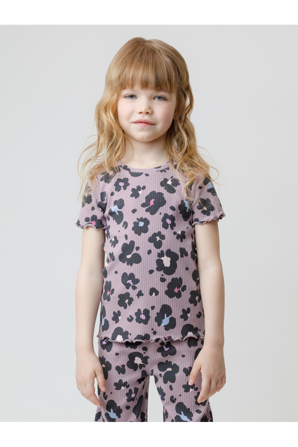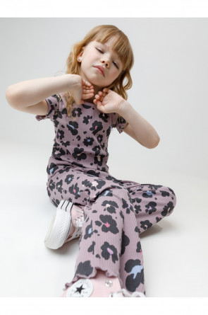 Футболка из эластичного трикотажа в рубчик для девочки. Оригинальный рисунок выполнен из стойких текстильных гипоаллергенных красителей. Изделие сохраняет цвет и форму после многократных стирок. Все трикотажные полотна производятся в соответствии с нормами швейцарского сертификата ЭкоТекс.