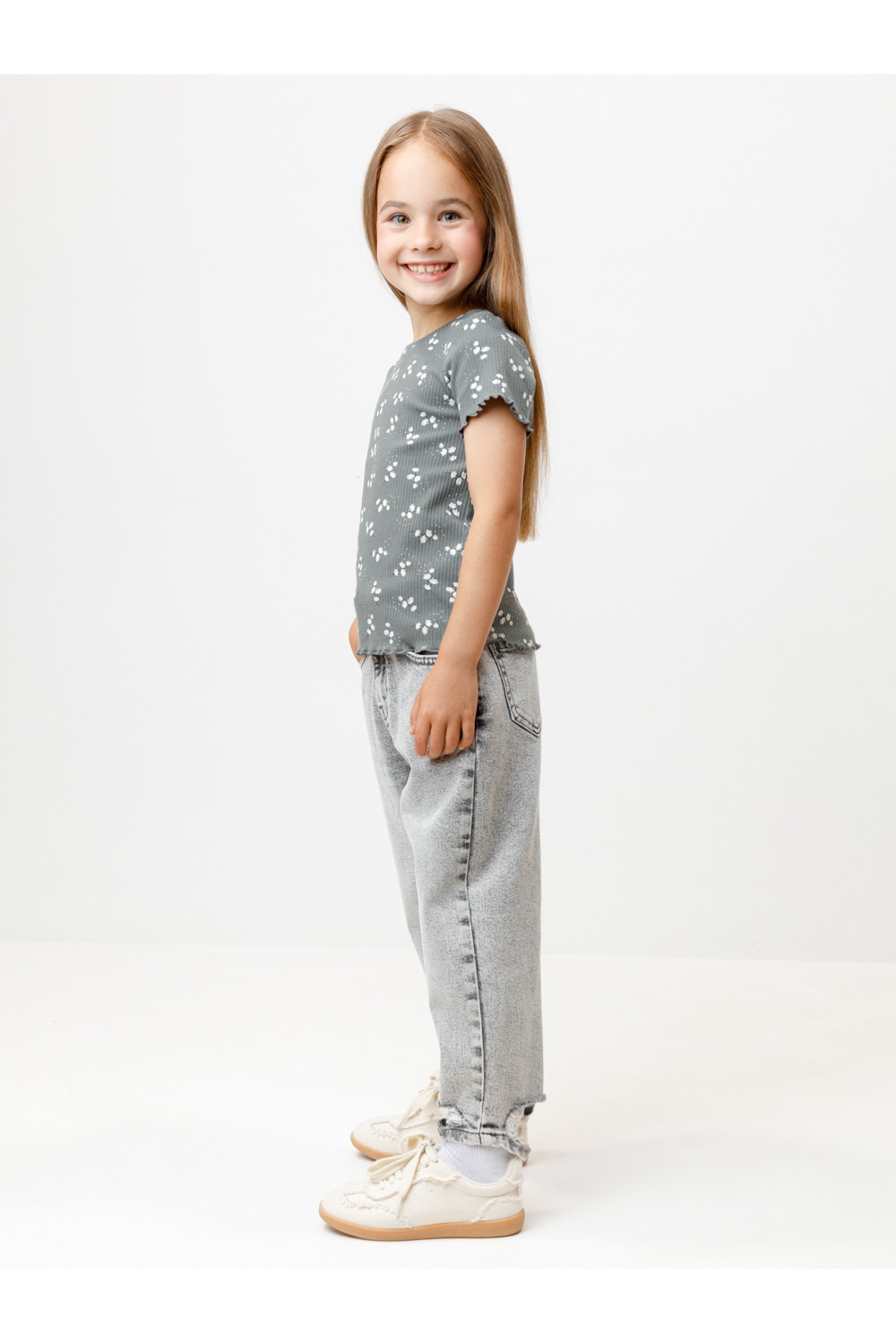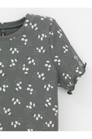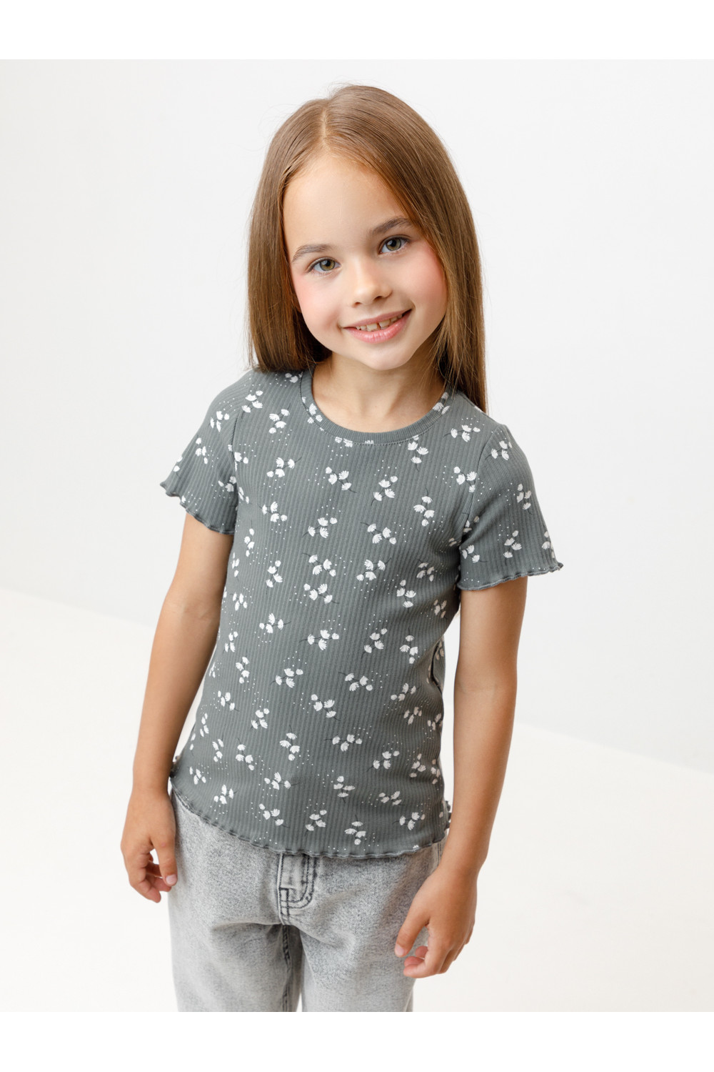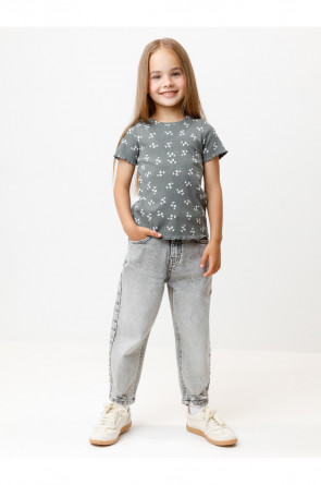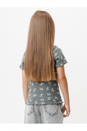 Футболка для девочки из эластичного трикотажа в рубчик. Оригинальный рисунок выполнен из стойких текстильных гипоаллергенных красителей. Изделие сохраняет цвет и форму после многократных стирок. Все трикотажные полотна производятся в соответствии с нормами швейцарского сертификата ЭкоТекс.