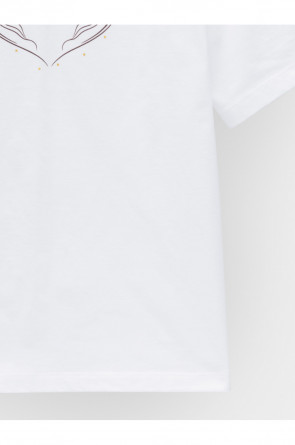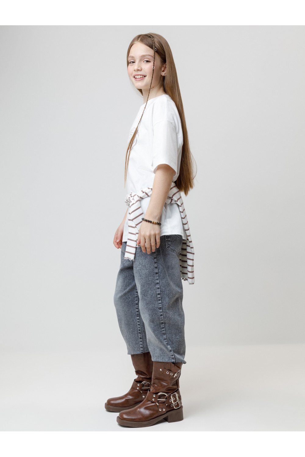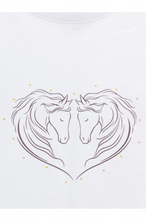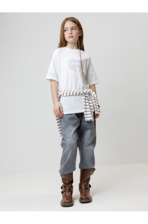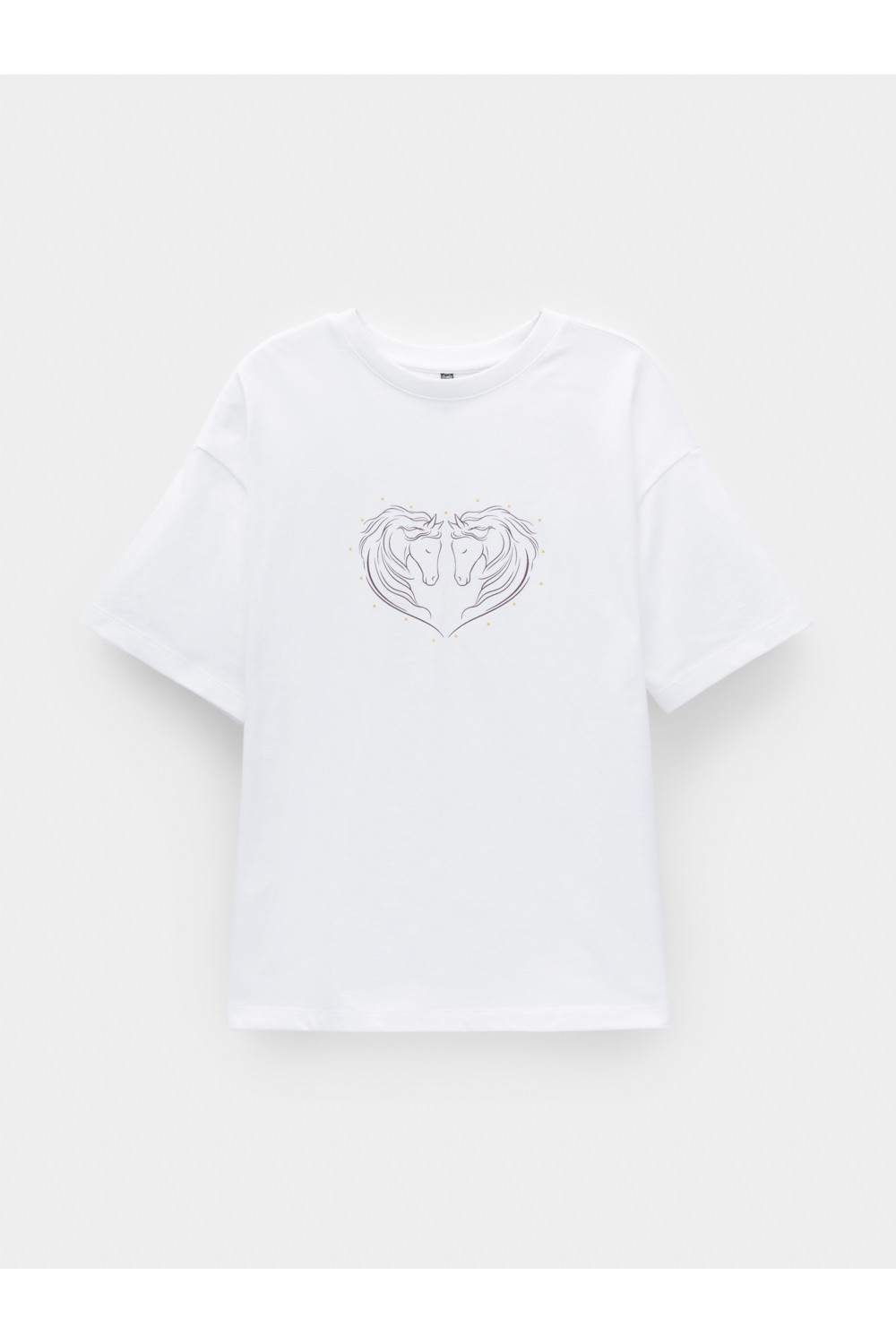 Футболка для девочки из гладкого трикотажа, произведённого из высококачественного натурального хлопка. Оригинальный принт выполнен из стойких текстильных гипоаллергенных красителей. Изделие сохраняет цвет и форму после многократных стирок. Все трикотажные полотна производятся в соответствии с нормами швейцарского сертификата ЭкоТекс.