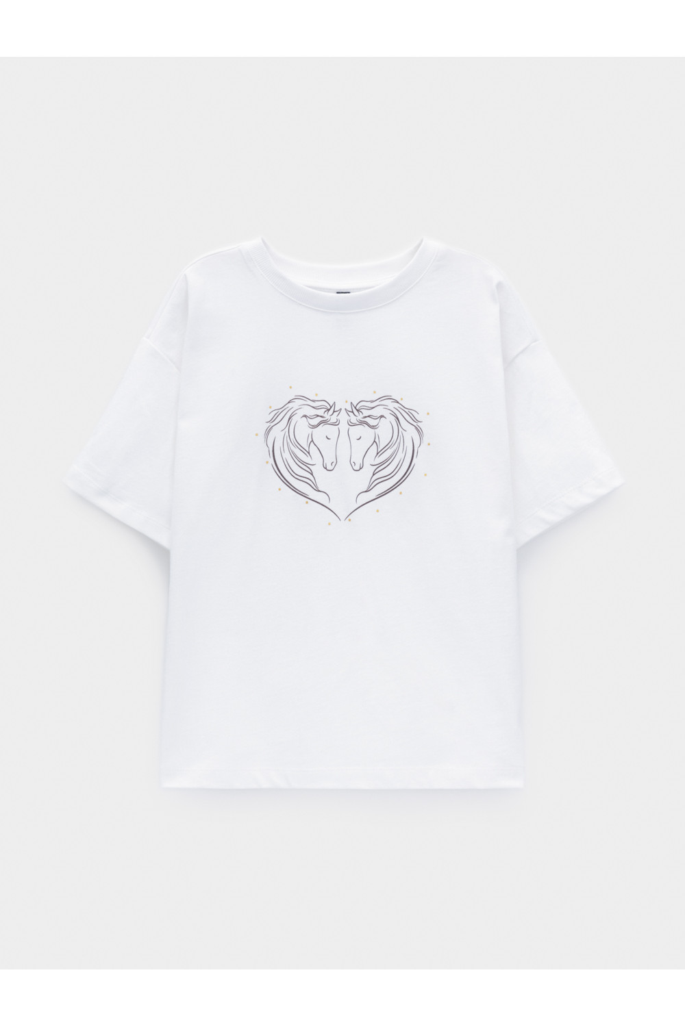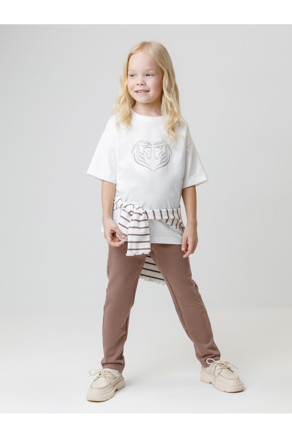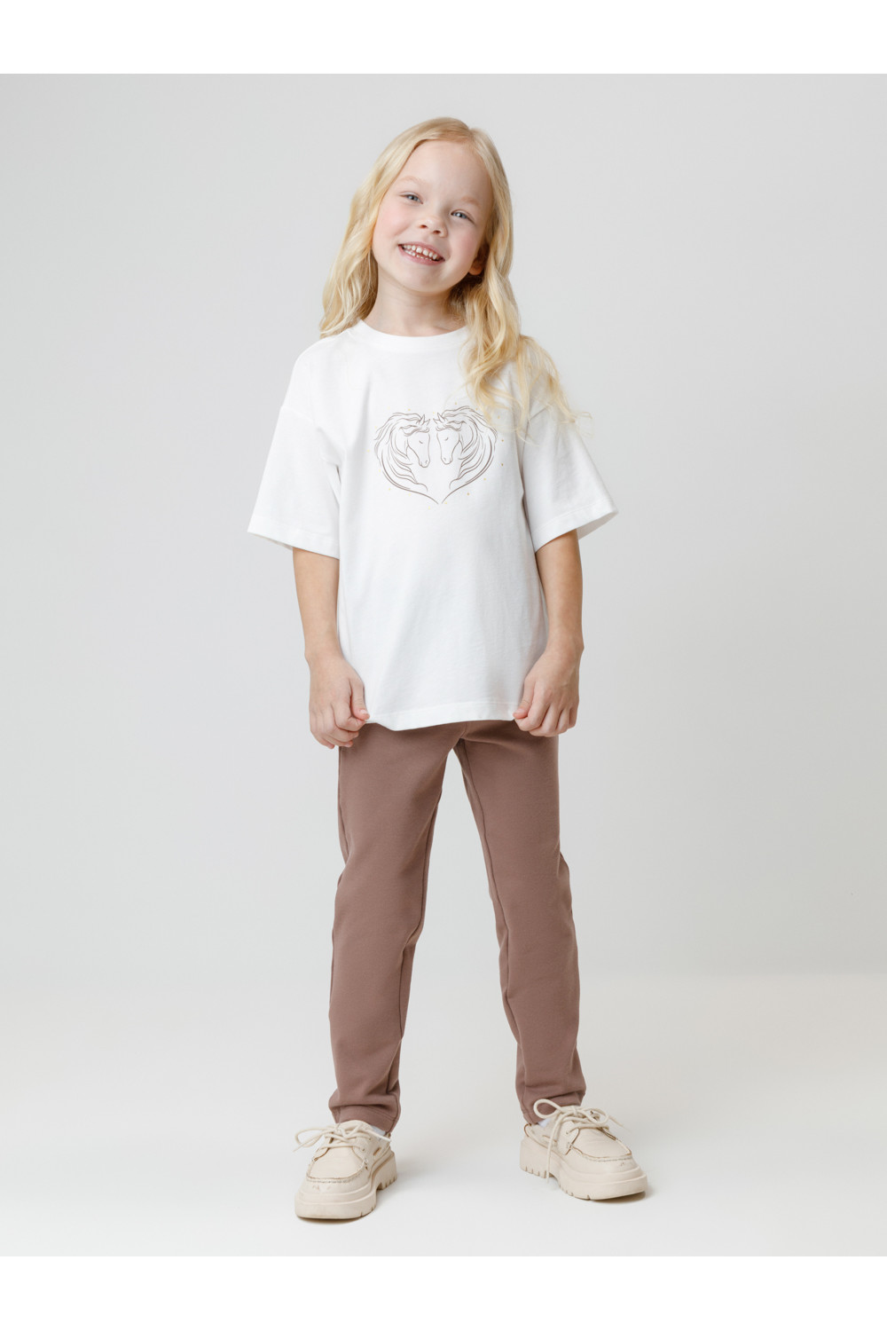 Футболка для девочки из гладкого трикотажа, произведённого из высококачественного натурального хлопка. Для удобства одевания на спинке имеется застёжка на кнопки в размерах 92 и 98. Оригинальный принт выполнен из стойких текстильных гипоаллергенных красителей. Изделие сохраняет цвет и форму после многократных стирок. Все трикотажные полотна производятся в соответствии с нормами швейцарского сертификата ЭкоТекс.