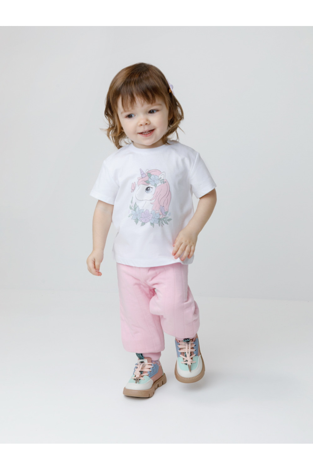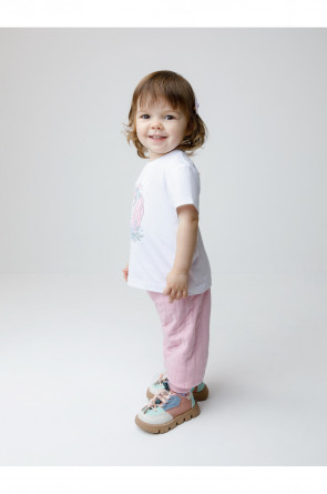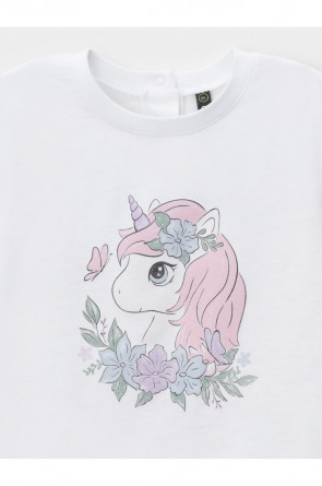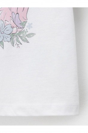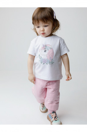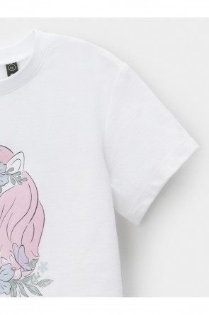 Футболка для девочки из высококачественного трикотажного полотна. Застёгивается на спине на кнопки. Оригинальный рисунок выполнен из стойких текстильных гипоаллергенных красителей. Изделие сохраняет цвет и форму после многократных стирок. Все трикотажные полотна производятся в соответствии с нормами швейцарского сертификата ЭкоТекс.