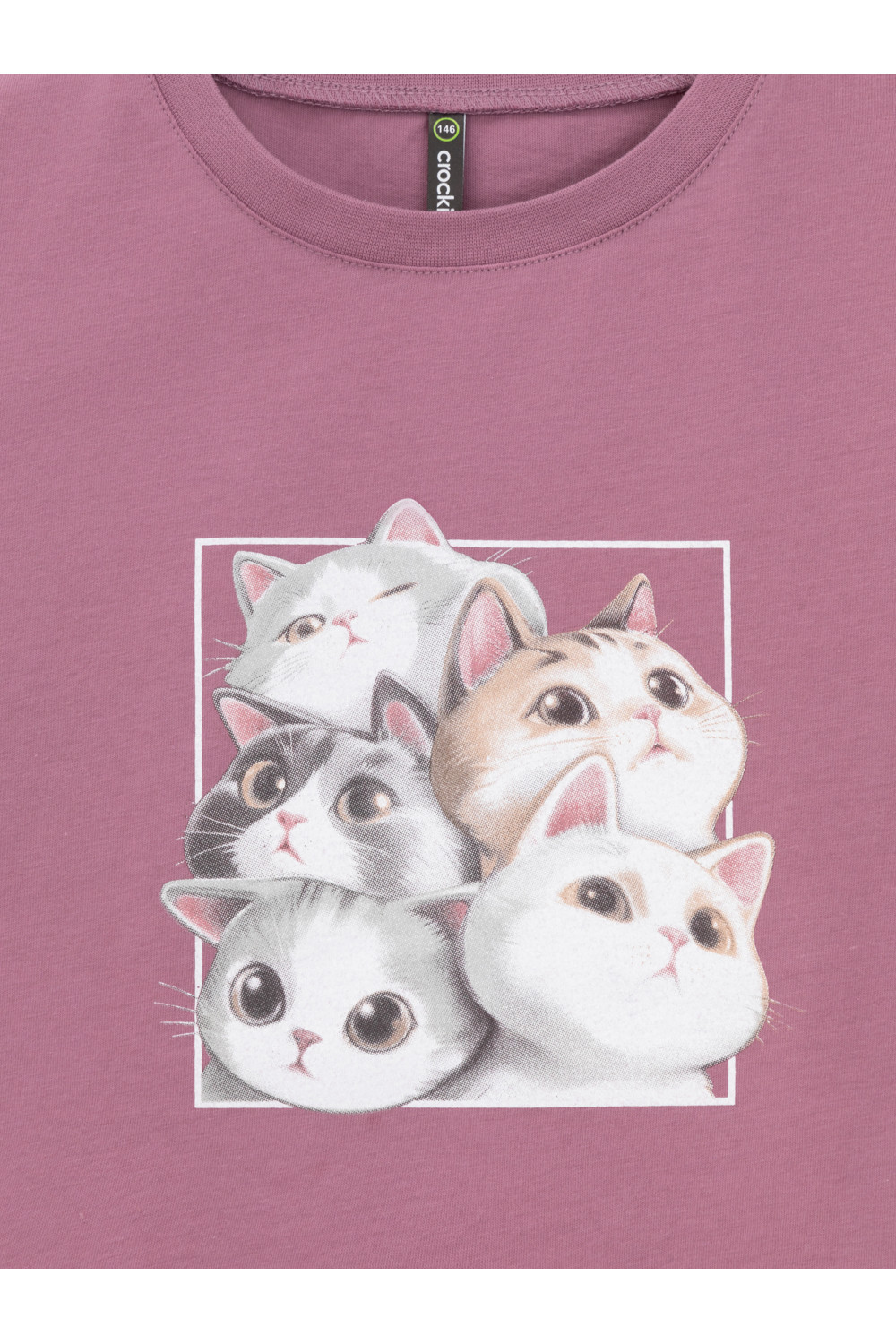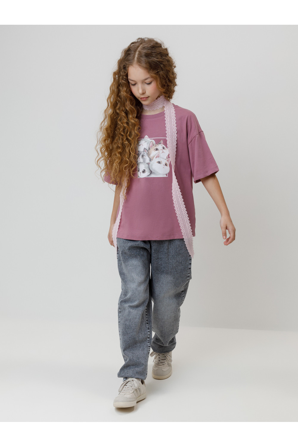 Футболка для девочки из гладкого трикотажа, произведённого из высококачественного натурального хлопка. Оригинальный принт выполнен из стойких текстильных гипоаллергенных красителей. Изделие сохраняет цвет и форму после многократных стирок. Все трикотажные полотна производятся в соответствии с нормами швейцарского сертификата ЭкоТекс.
