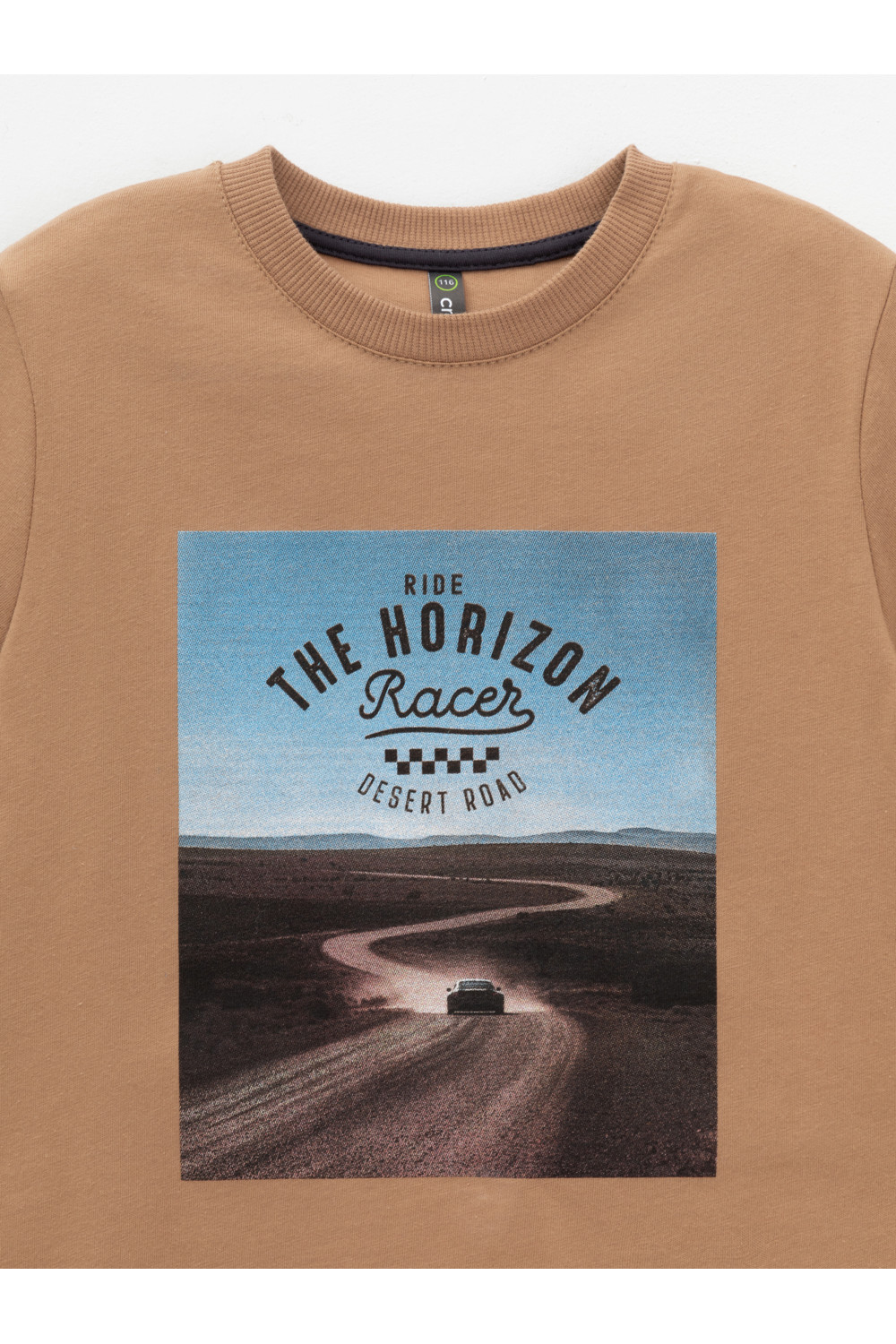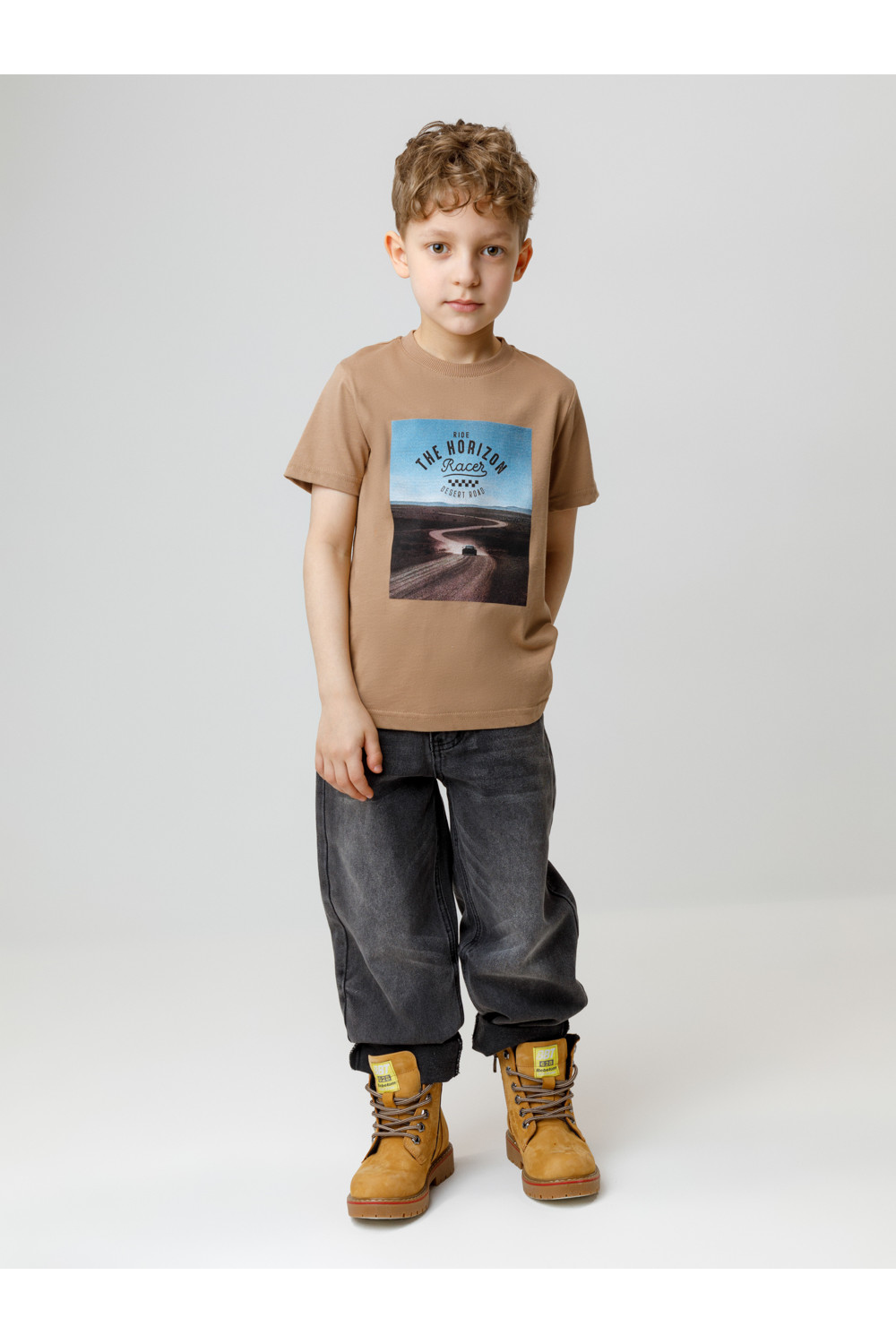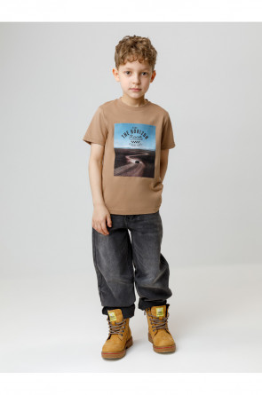 Футболка для мальчика из гладкого трикотажа, произведённого из высококачественного натурального хлопка. Для удобства одевания имеется застёжка на кнопки в размерах 92 и 98. Оригинальный принт выполнен из стойких текстильных гипоаллергенных красителей. Изделие сохраняет цвет и форму после многократных стирок. Все трикотажные полотна производятся в соответствии с нормами швейцарского сертификата ЭкоТекс.