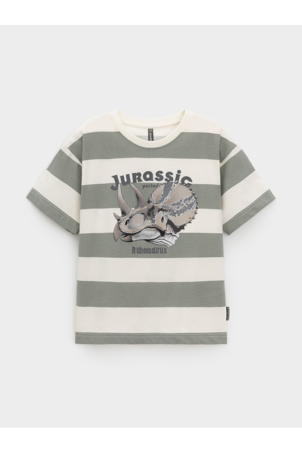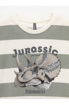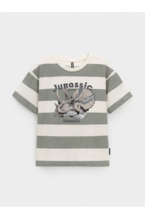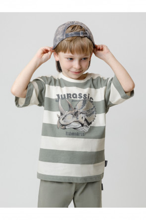 Футболка для мальчика из гладкого трикотажа, произведённого из высококачественного натурального хлопка. Для удобства одевания имеется застёжка на кнопки в размерах 92 и 98. Оригинальный принт выполнен из стойких текстильных гипоаллергенных красителей. Изделие сохраняет цвет и форму после многократных стирок. Все трикотажные полотна производятся в соответствии с нормами швейцарского сертификата ЭкоТекс.