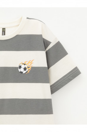 Футболка для мальчика из гладкого трикотажа, произведённого из высококачественного натурального хлопка. Для удобства одевания имеется застёжка на кнопки в размерах 92 и 98. Оригинальный принт выполнен из стойких текстильных гипоаллергенных красителей. Изделие сохраняет цвет и форму после многократных стирок. Все трикотажные полотна производятся в соответствии с нормами швейцарского сертификата ЭкоТекс.