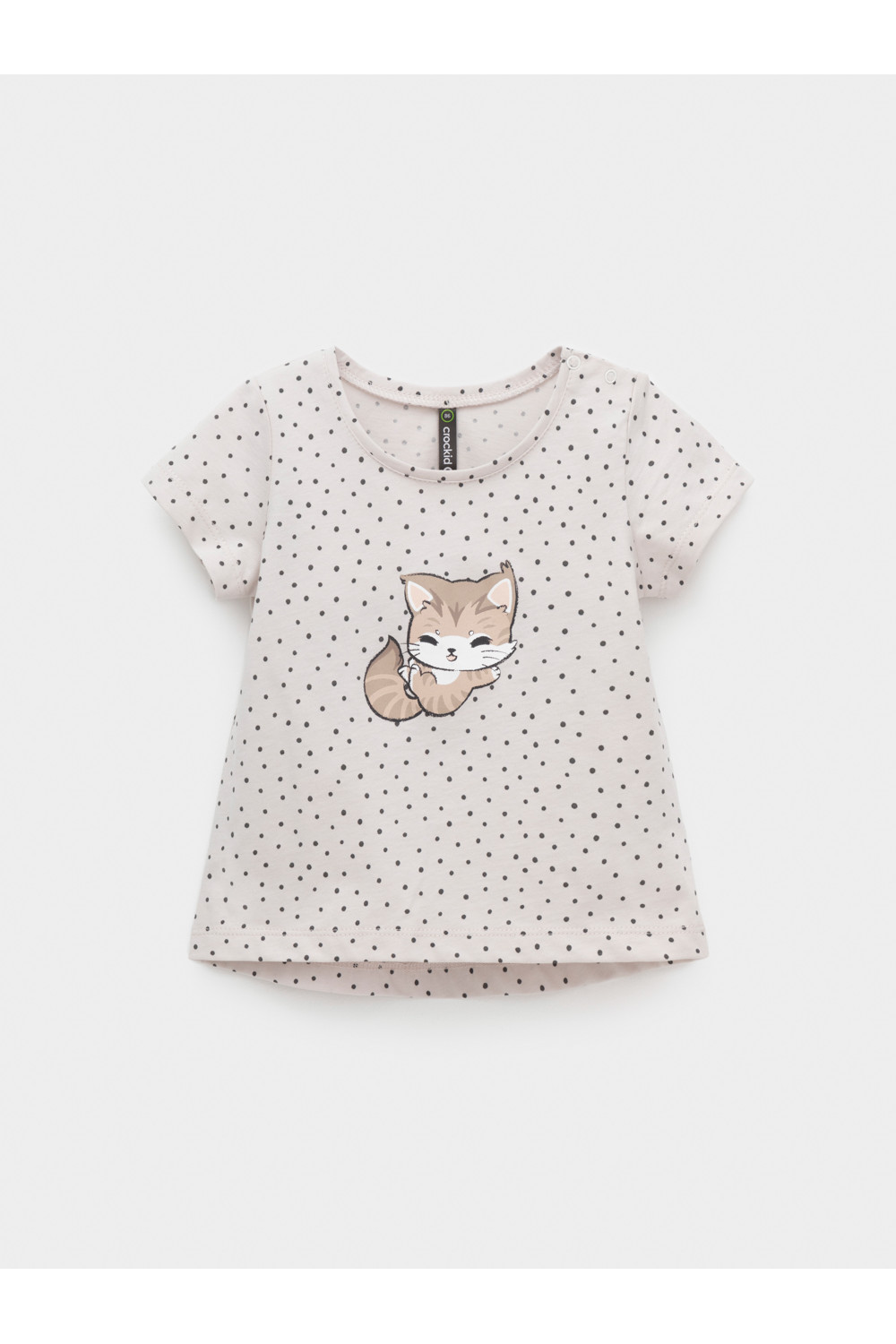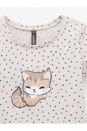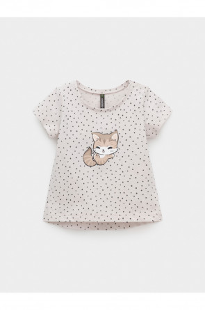 Футболка для девочки из гладкого трикотажа, произведённого из высококачественного натурального хлопка. Застёгивается на плече кнопки. Оригинальный принт выполнен из стойких текстильных гипоаллергенных красителей. Изделие сохраняет цвет и форму после многократных стирок. Все трикотажные полотна производятся в соответствии с нормами швейцарского сертификата ЭкоТекс.