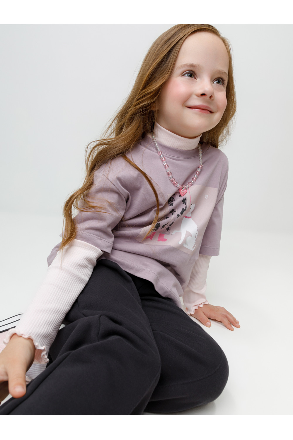 Футболка для девочки из гладкого трикотажа, произведённого из высококачественного натурального хлопка. В размерах 92 и 98 на спине застёгивается на кнопки. Оригинальный принт выполнен из стойких текстильных гипоаллергенных красителей. Изделие сохраняет цвет и форму после многократных стирок. Все трикотажные полотна производятся в соответствии с нормами швейцарского сертификата ЭкоТекс.