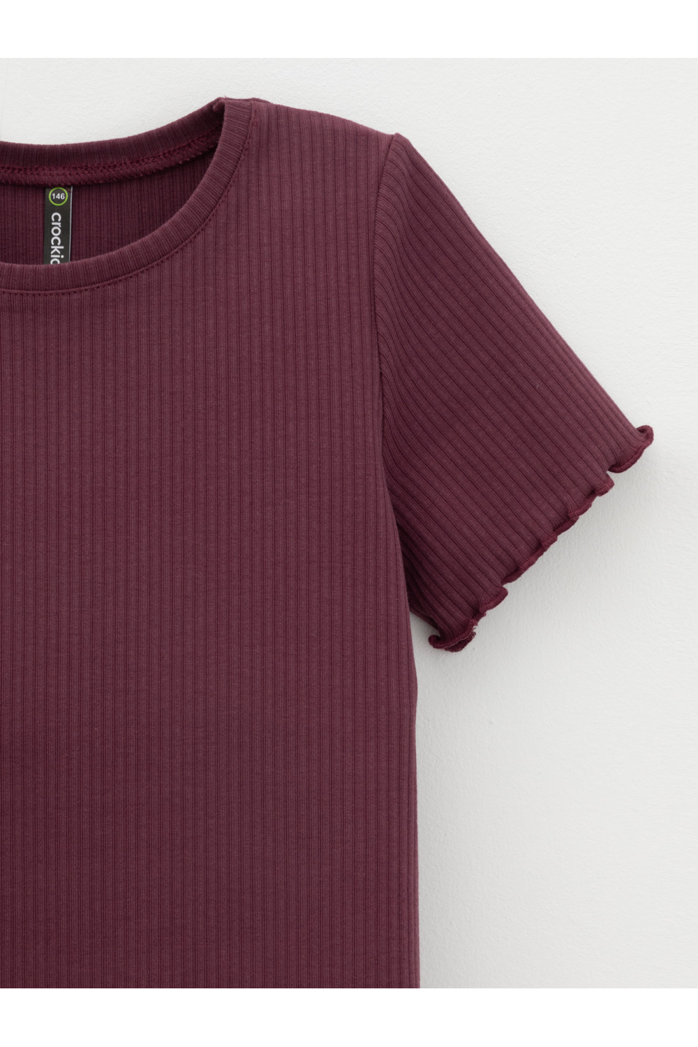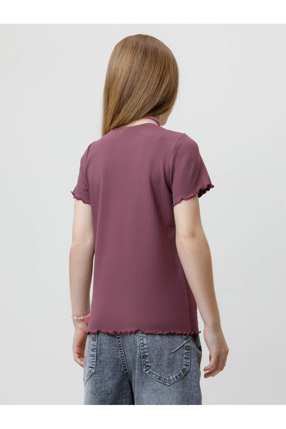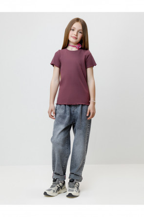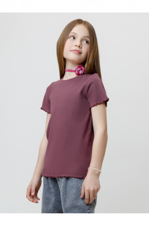 Футболка для девочки из эластичного трикотажа в рубчик. Изделие сохраняет цвет и форму после многократных стирок. Все трикотажные полотна производятся в соответствии с нормами швейцарского сертификата ЭкоТекс.