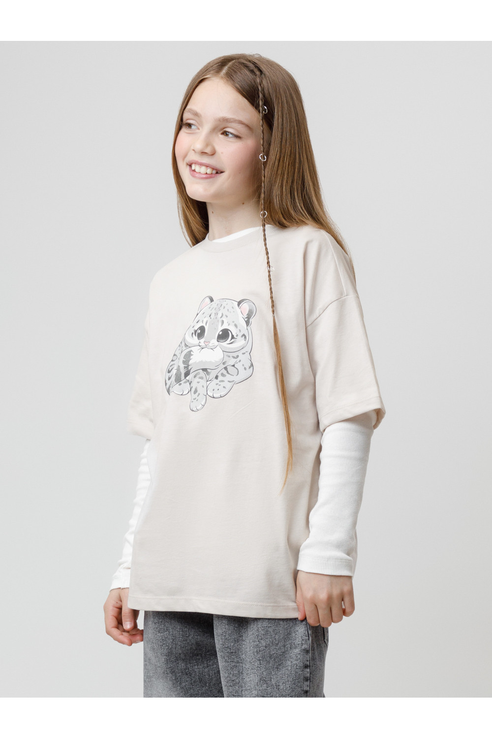 Футболка для девочки из гладкого трикотажа, произведённого из высококачественного натурального хлопка. Оригинальный принт выполнен из стойких текстильных гипоаллергенных красителей. Изделие сохраняет цвет и форму после многократных стирок. Все трикотажные полотна производятся в соответствии с нормами швейцарского сертификата ЭкоТекс.