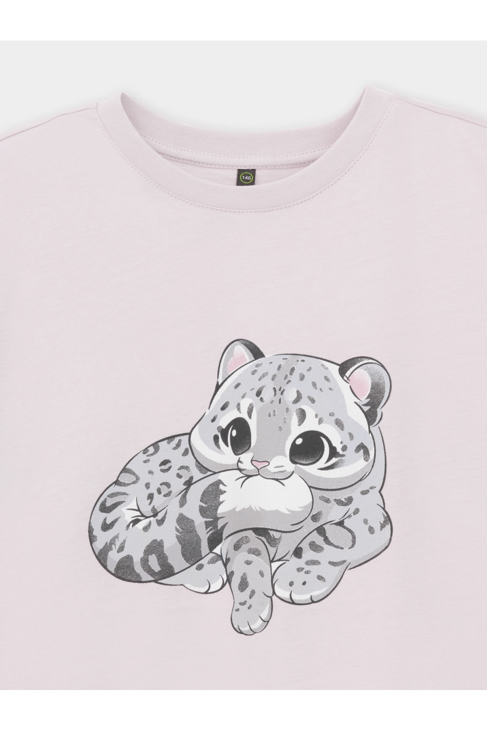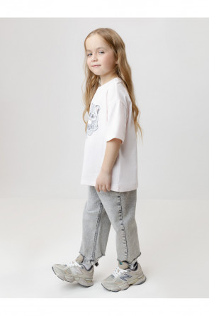 Футболка для девочки из гладкого трикотажа, произведённого из высококачественного натурального хлопка. В размерах 92 и 98 на спине застёгивается на кнопки. Оригинальный принт выполнен из стойких текстильных гипоаллергенных красителей. Изделие сохраняет цвет и форму после многократных стирок. Все трикотажные полотна производятся в соответствии с нормами швейцарского сертификата ЭкоТекс.