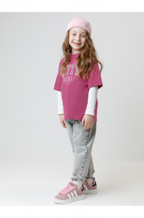 Футболка для девочки из гладкого трикотажа, произведённого из высококачественного натурального хлопка. В 92 и 98 размерах на спине для удобства при одевании застёгивается на кнопки. Оригинальный принт выполнен из стойких текстильных гипоаллергенных красителей. Изделие сохраняет цвет и форму после многократных стирок. Все трикотажные полотна производятся в соответствии с нормами швейцарского сертификата ЭкоТекс.