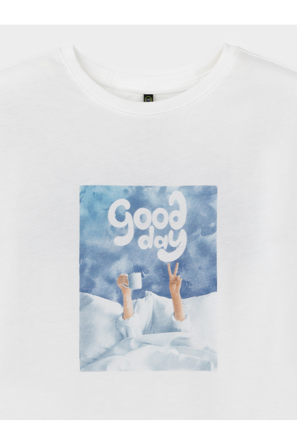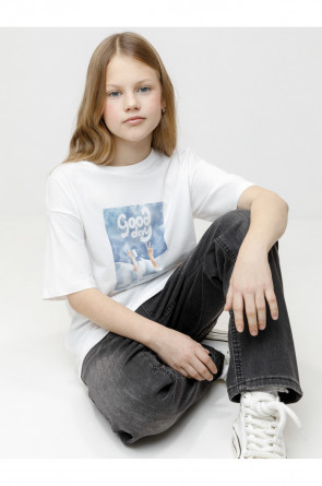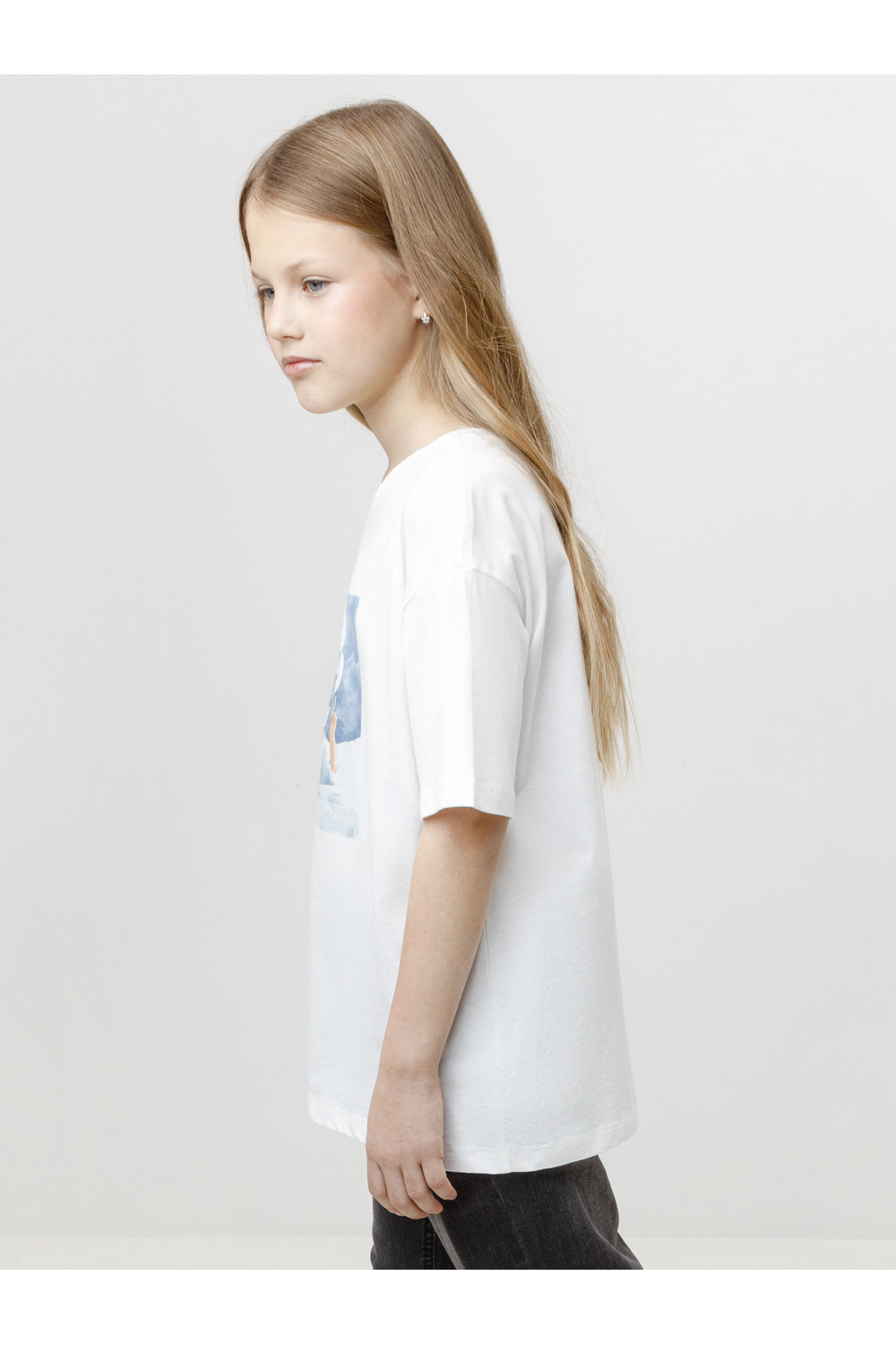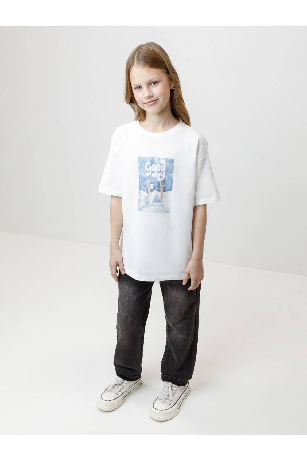 Футболка для девочки из гладкого трикотажа, произведённого из высококачественного натурального хлопка. Оригинальный принт выполнен из стойких текстильных гипоаллергенных красителей. Изделие сохраняет цвет и форму после многократных стирок. Все трикотажные полотна производятся в соответствии с нормами швейцарского сертификата ЭкоТекс.