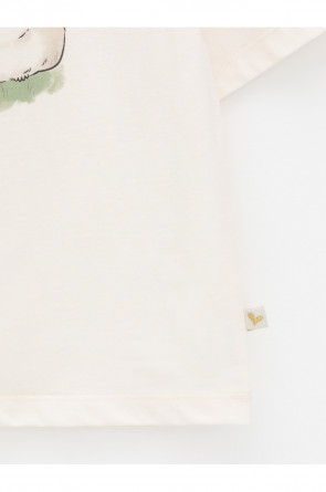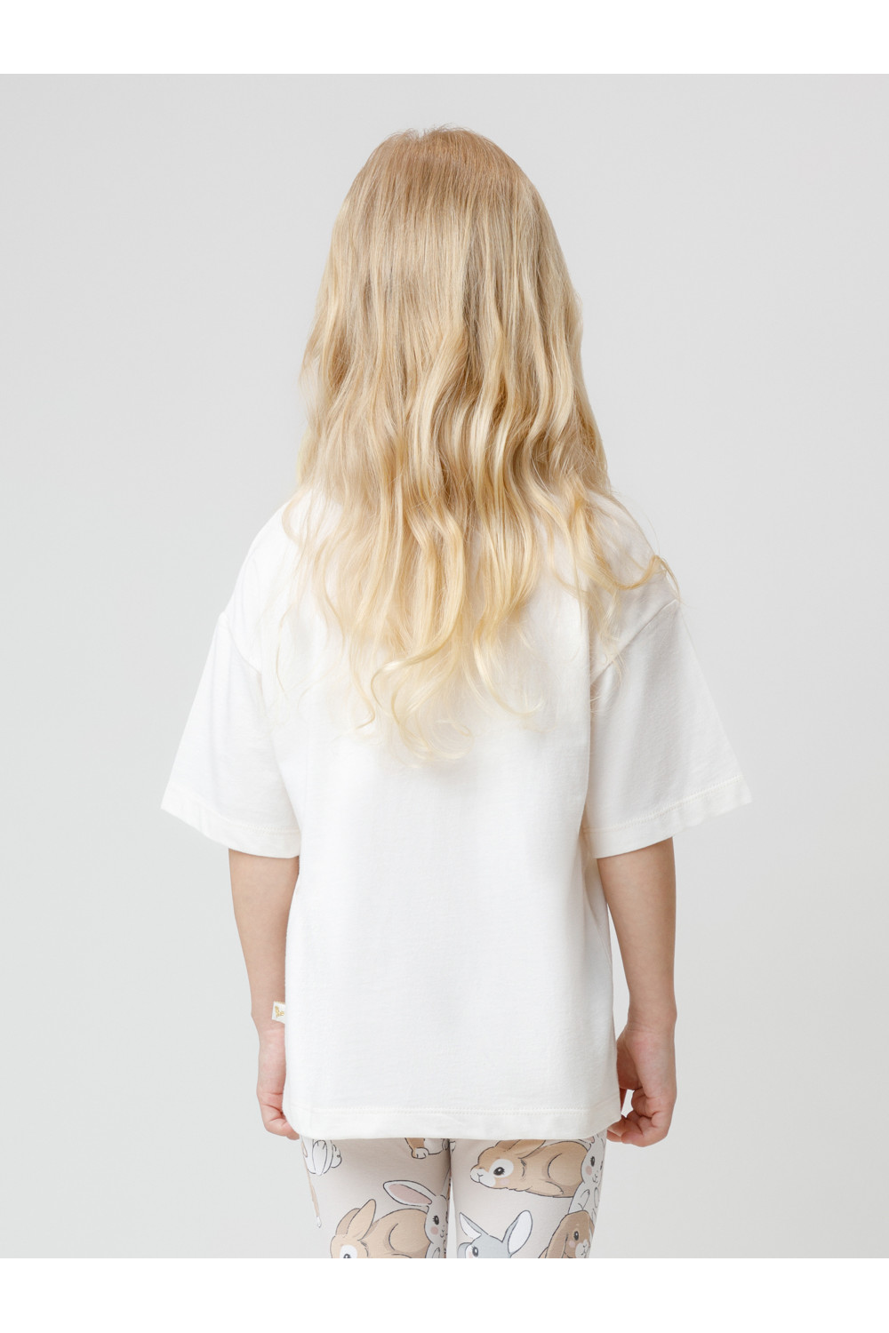 Футболка для девочки из гладкого трикотажа, произведённого из высококачественного натурального хлопка. Застёгивается на спине на кнопки в размерах 92 и 98. Оригинальный принт выполнен из стойких текстильных гипоаллергенных красителей. Изделие сохраняет цвет и форму после многократных стирок. Все трикотажные полотна производятся в соответствии с нормами швейцарского сертификата ЭкоТекс.