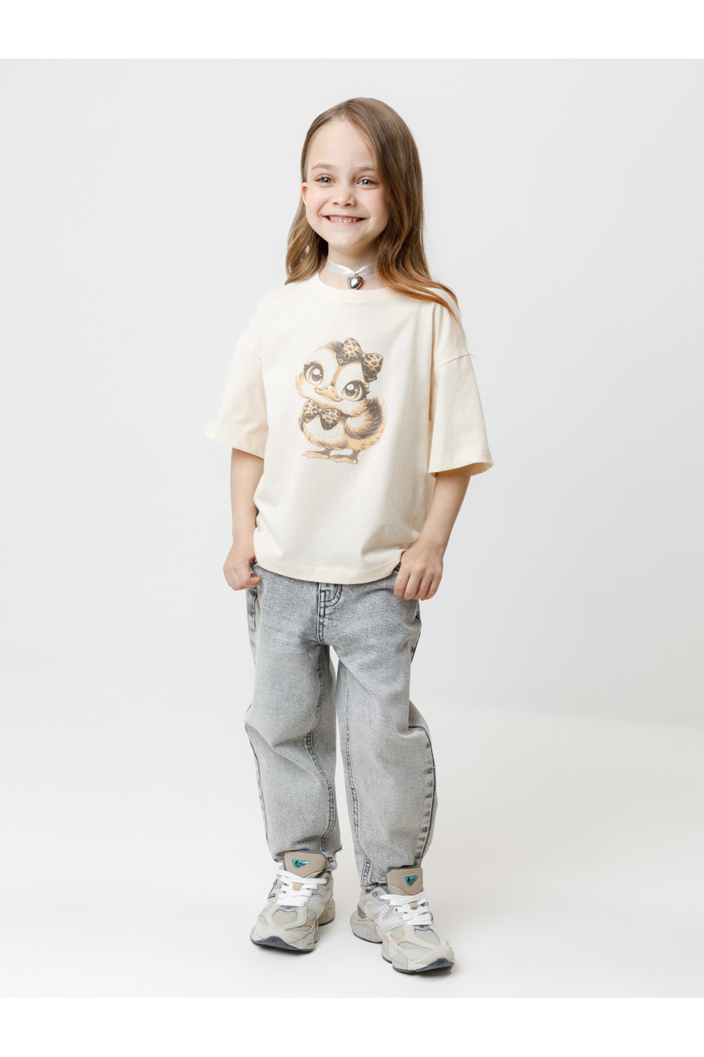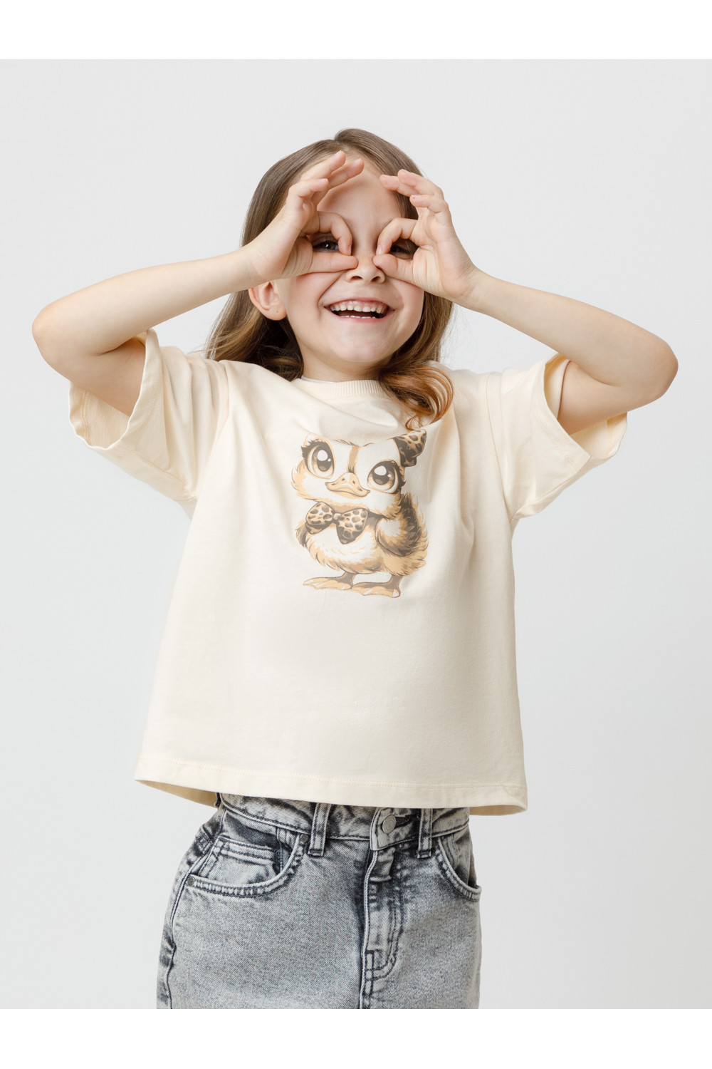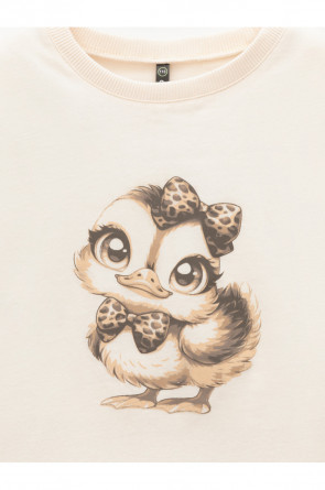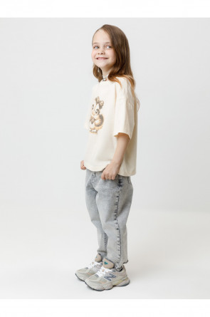 Футболка для девочки из гладкого трикотажа, произведённого из высококачественного натурального хлопка. Застёгивается на спине на кнопки в размерах 92 и 98. Оригинальный принт выполнен из стойких текстильных гипоаллергенных красителей. Изделие сохраняет цвет и форму после многократных стирок. Все трикотажные полотна производятся в соответствии с нормами швейцарского сертификата ЭкоТекс.